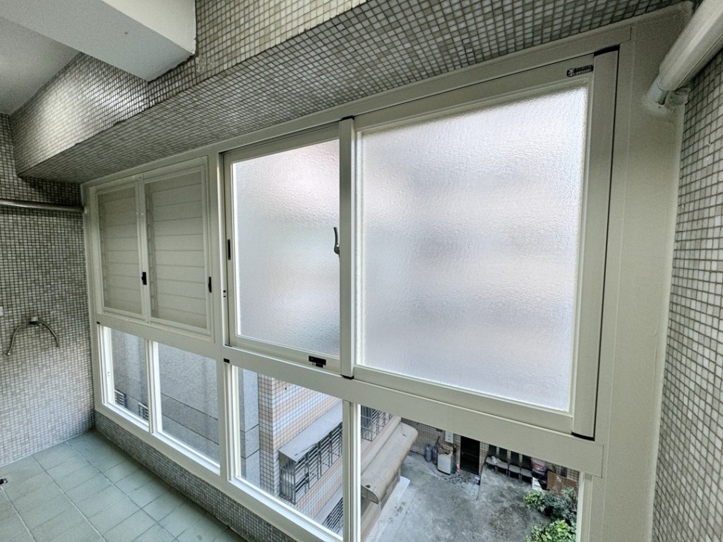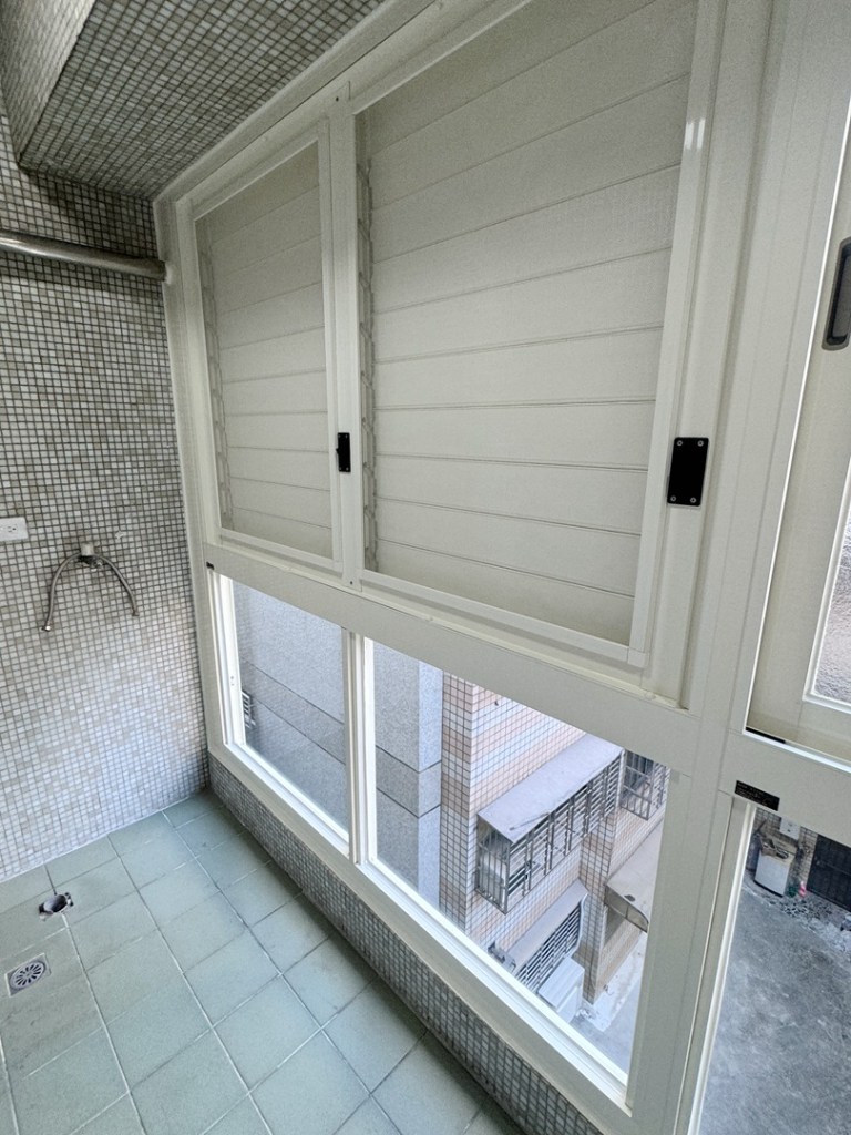 此次業主選用明亮有朝氣的乳白色氣密窗搭配透明玻璃,鋁百葉窗和橫拉氣密窗併用,乾淨耐用省空間。