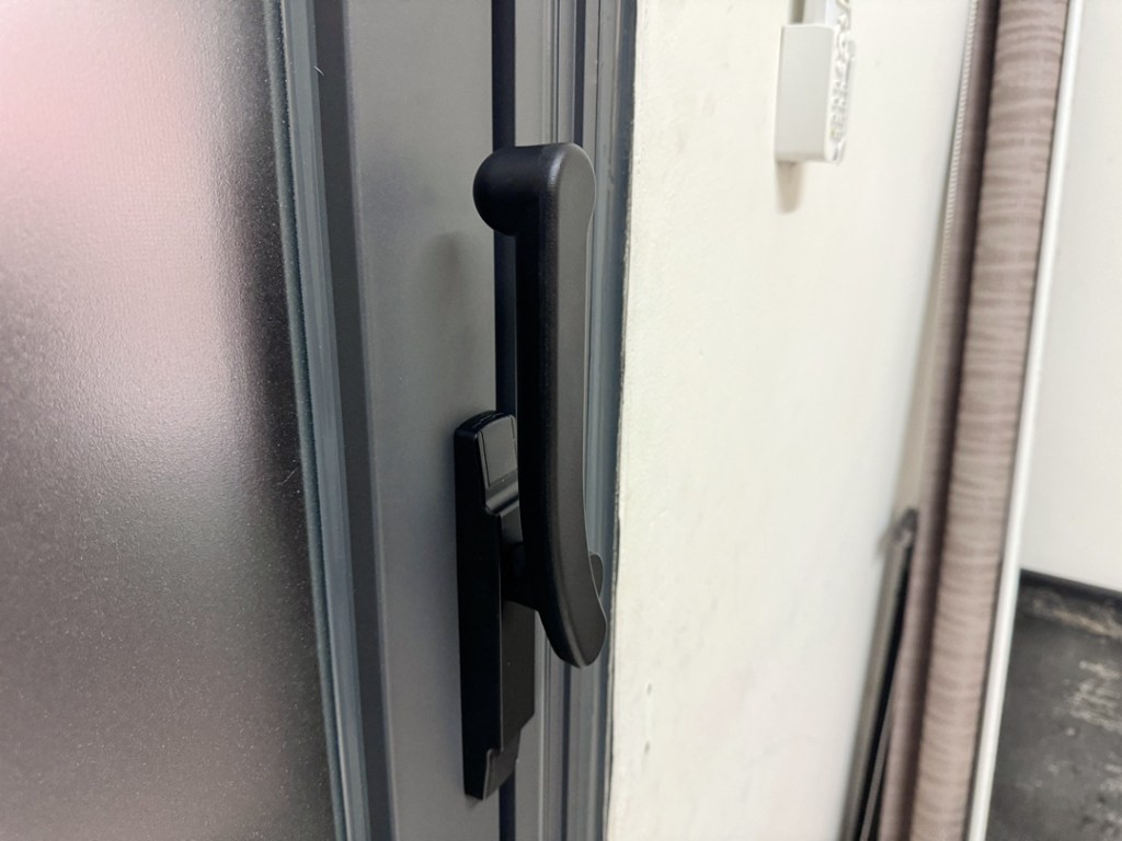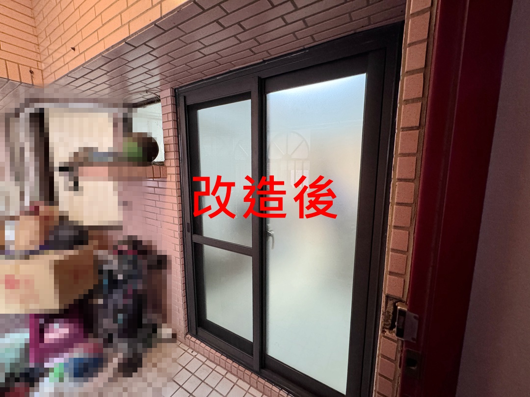 業主家客廳落地窗老舊,冬天冷風會灌進室內很冷,希望不用動到泥作更換氣密窗。建議以新框包舊框方式,將舊型鋁窗更換為氣密窗。客製化選擇,依業主使用習慣來安裝省力門把方向,可重新決定常進出位置,使用方式更人性化。