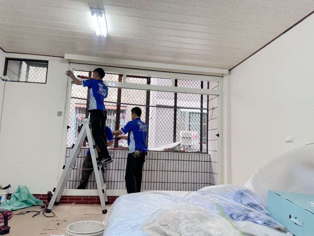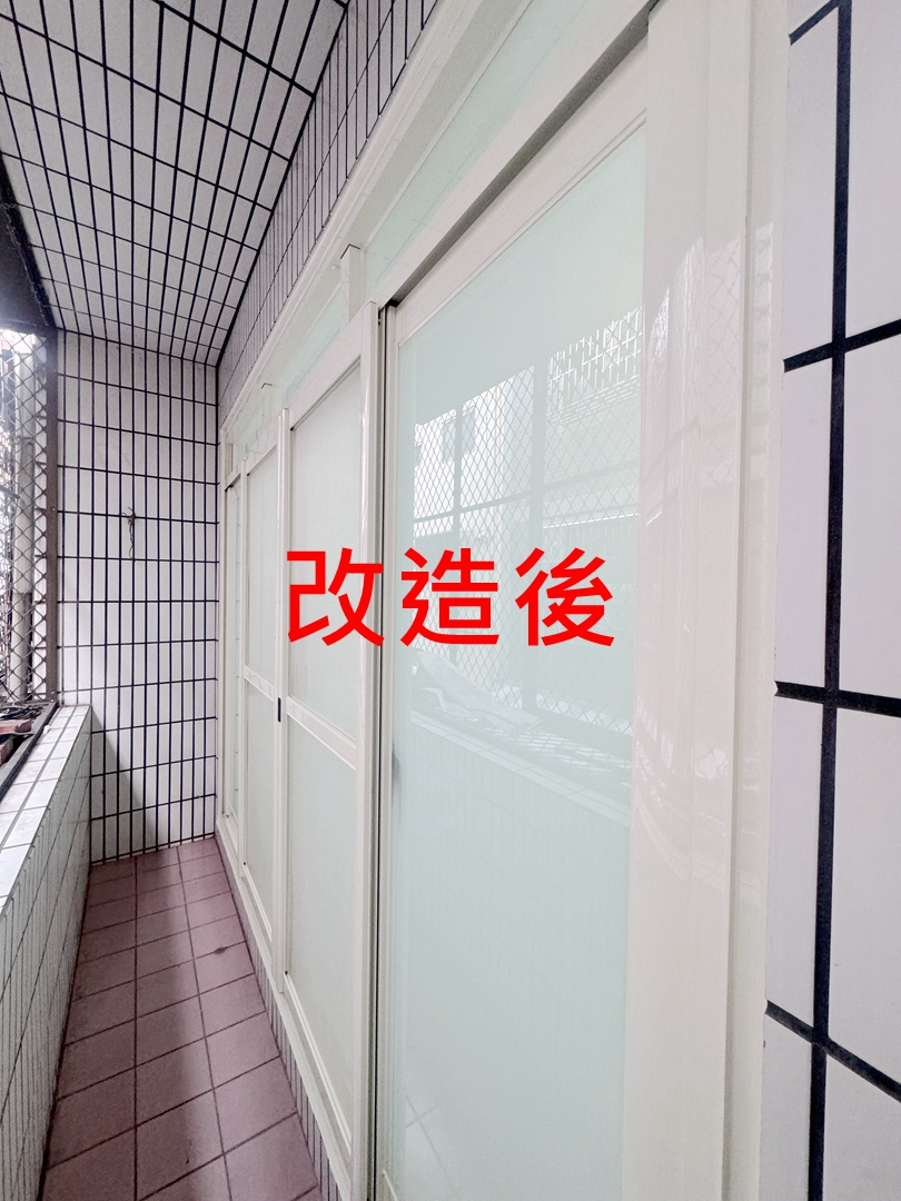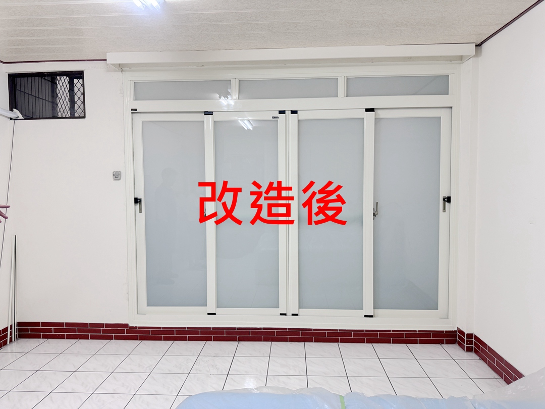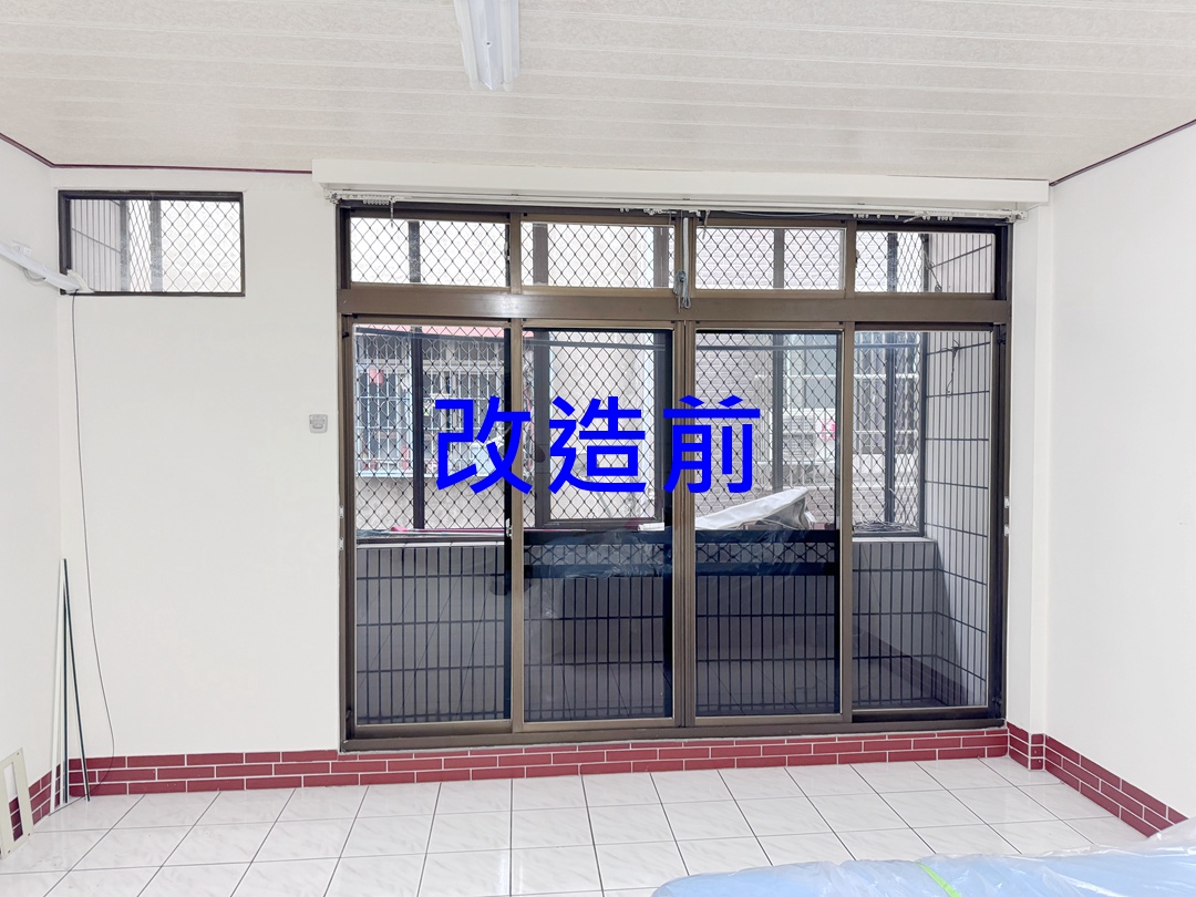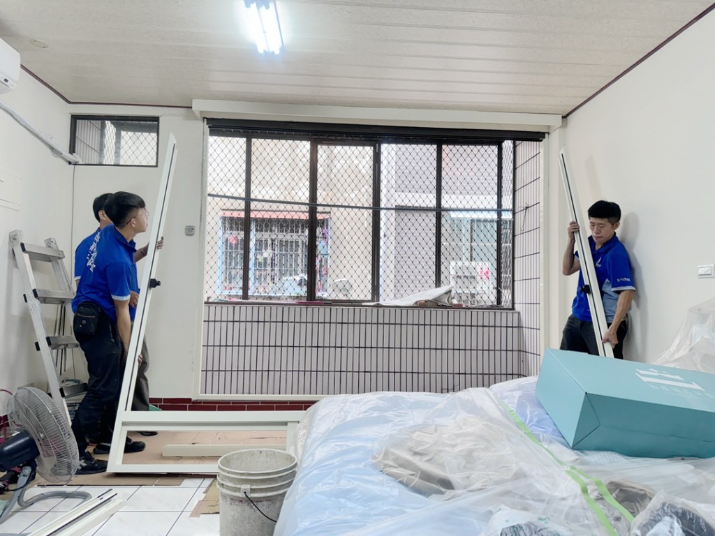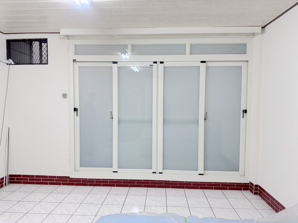 業主家房間為傳統落地窗,因鄰居餐飲業油煙味影響居住品質,想更換氣密落地窗。業主家原為四拉落地窗+上活動氣窗。因氣窗不常開啟,建議作固定玻璃,以減少落塵堆積。四拉氣密窗選擇品牌為宇生精品氣密窗,以乾式施工包框,當天即可完成入住。