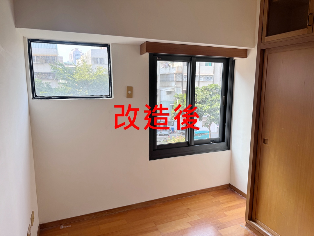 業主家剛購入台中北屯中古屋,為提升生活品質,決定在入住前全數更換氣密窗。和室的鋁窗以包框方式,不拆框,不動泥作。乾式施工包框新窗,氣密效果好,施工快速。