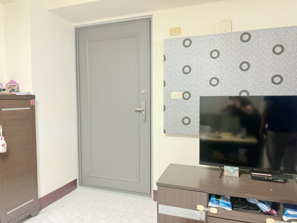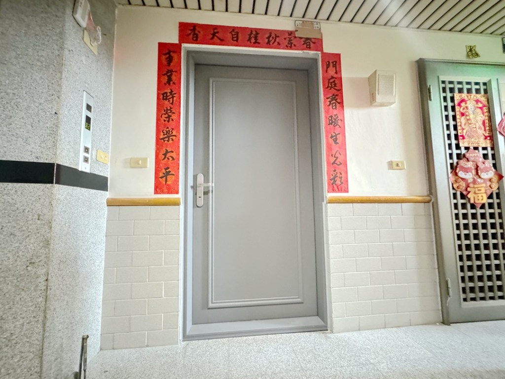 業主家玄關門老舊汰換,選擇銀灰色的丹頂鶴玄關門,舊門框拆除,全新設計的門面打造,施工只需一天。