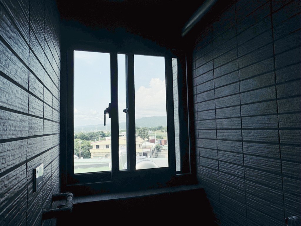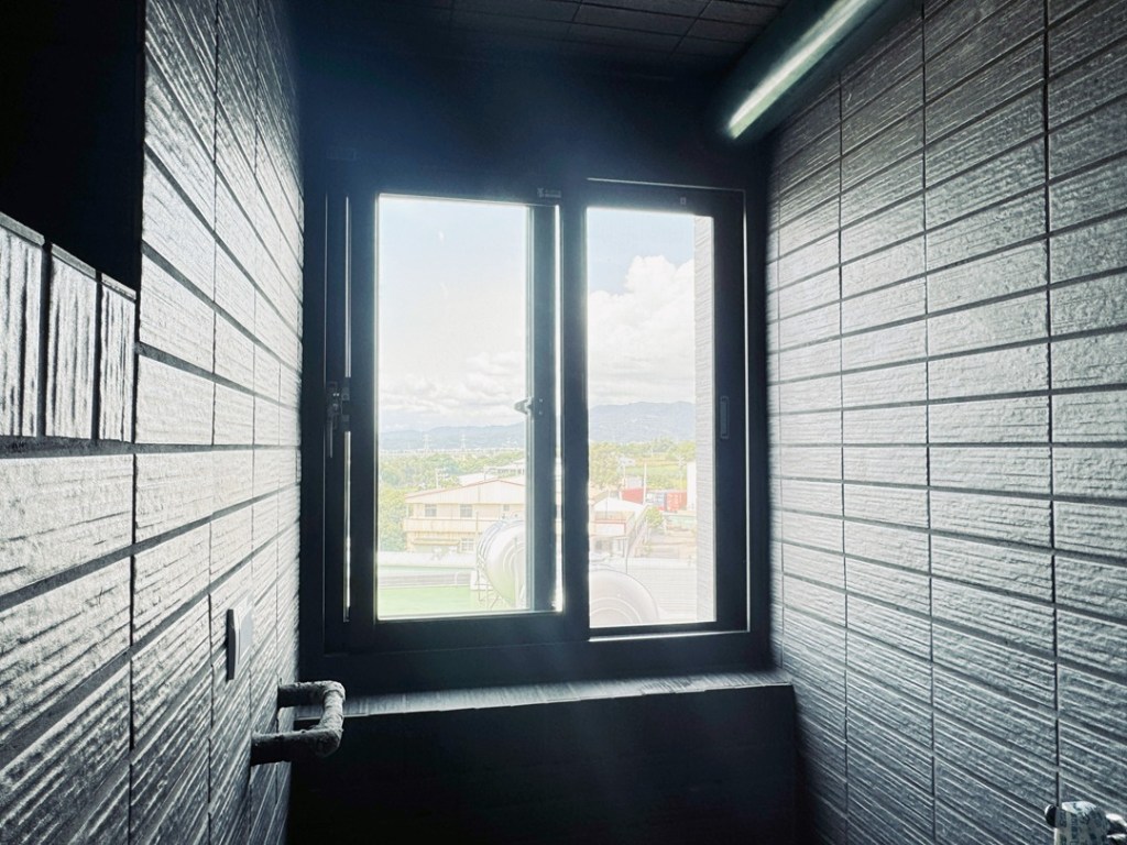顏色部分,業主陽台密窗採用鐵灰砂色搭配透明玻璃。
