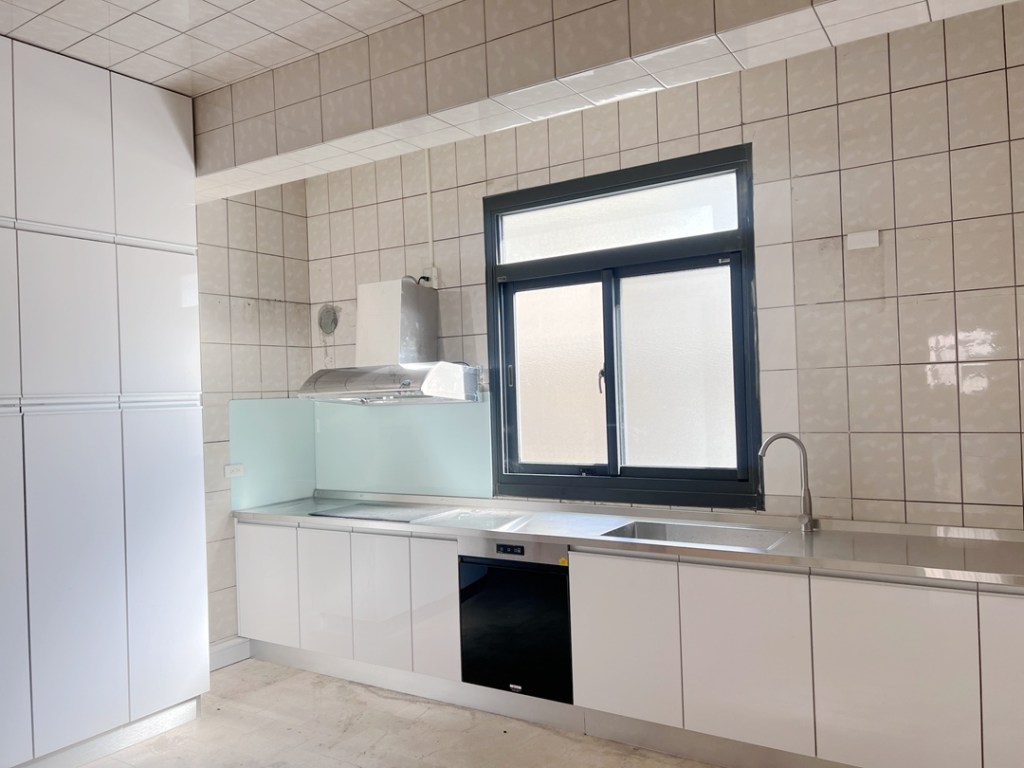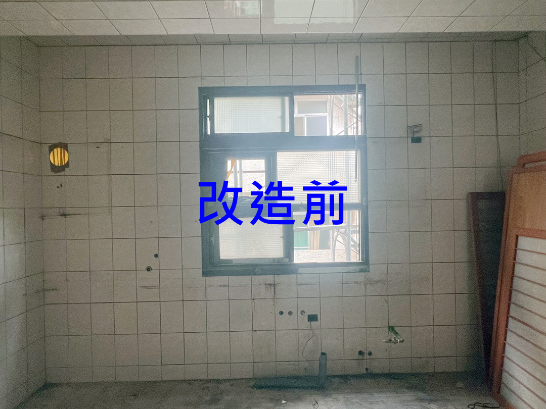 業主於台中大甲購入一中古透天,將廚房重新整理更換氣密窗。因舊窗多次魔改,建議全部拆除。新氣密窗建議作二拉氣密窗,通風大氣更符合廚房需要通風功能。配合全棟建築設計,沿用鐵灰砂色氣密窗,以乾式施工法施作,不需泥作,半天可完成。
