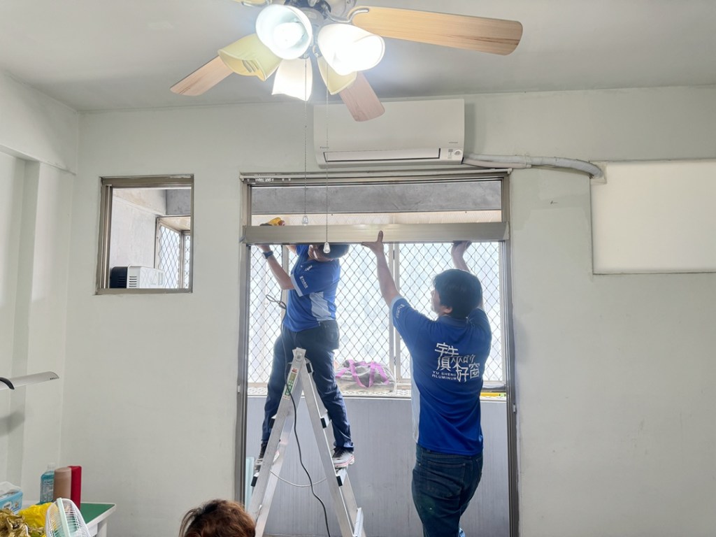 業主全棟重新裝修,希望不用動到泥作更換氣密窗。建議以乾式施工的包框方式,將舊型鋁窗更換為氣密窗。客製化選擇,依業主使用習慣來安裝省力門把方向,使用方式更人性化。全程採用乾式施工法,以包框方式施工,不破壞牆面乾淨好清潔。