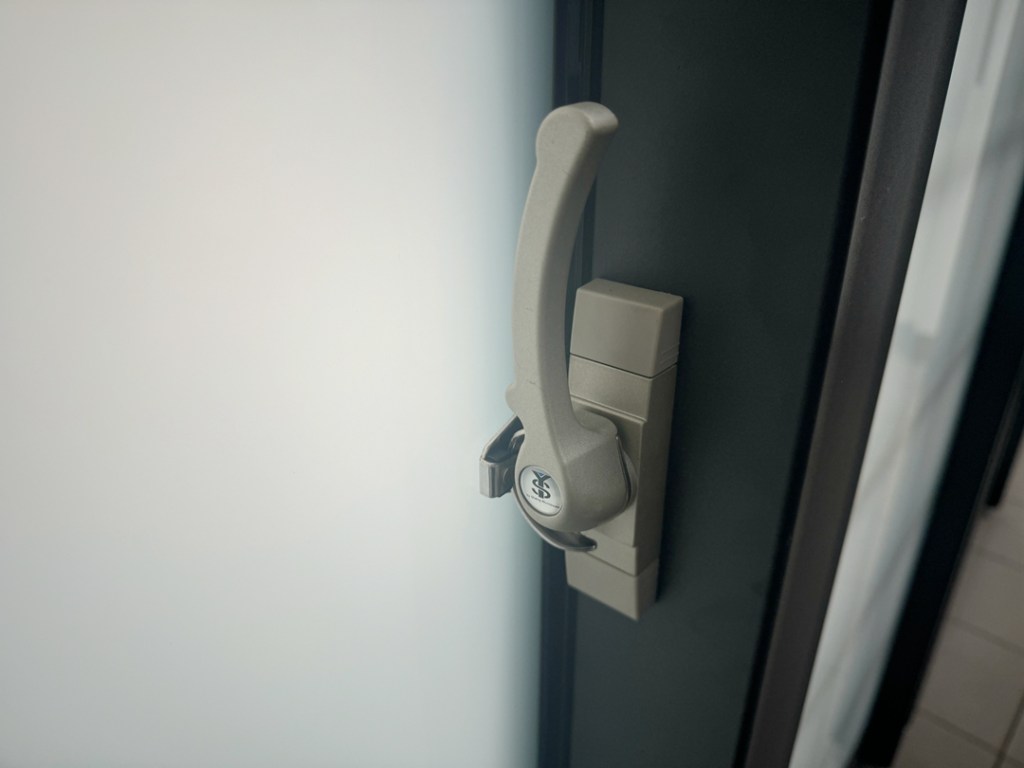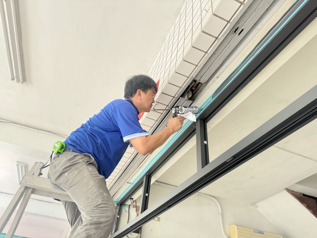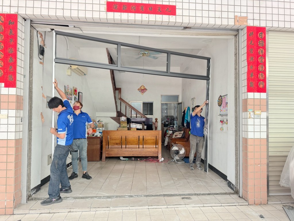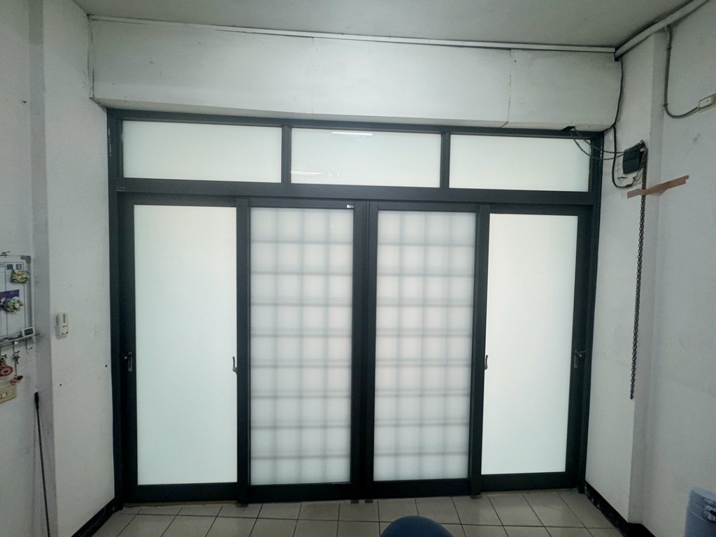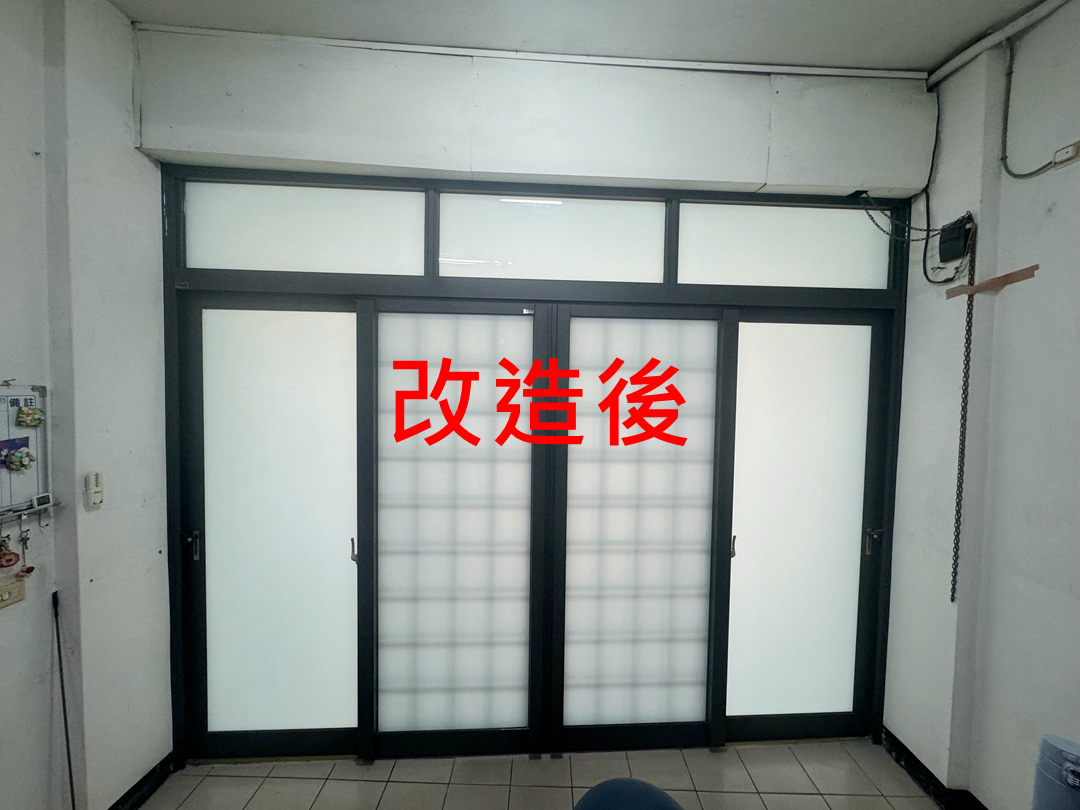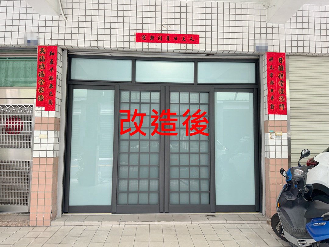 因為鄰近馬路噪音比較大,業主希望在一樓客廳加強隔音,建議安裝氣密落地門。業主還希望以後可以安裝電子鎖。經討論建議使用白膜膠合安全玻璃,搭配鐵灰砂色的設計,不僅能保護隱私,還能提升居家生活的品質。採用無障礙銅軌款-四拉型氣密落地門,整體風格更現代化。