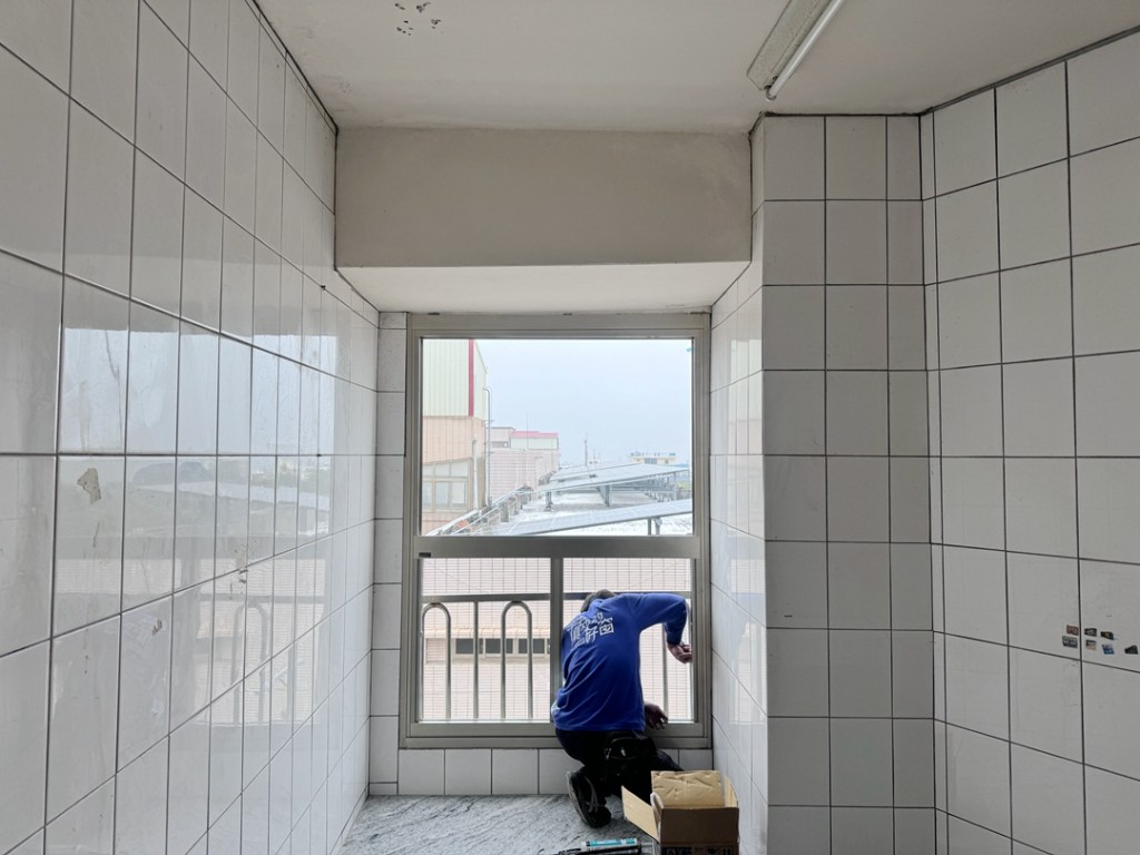 業主新購入位於台中大甲電梯華廈的中古屋,因為原來落地窗較低業主擔心小孩危險,希望新窗戶能做得更安全。建議業主將落地窗改為下固定玻璃加氣密窗,讓窗戶的高度符合安全法規-欄杆、陽台與矮牆等高度應高於120公分。下固定選擇白膜膠合安全玻璃,不易打破。上氣密窗搭配透明強化玻璃保留室內光線及穿透度空間感更明亮。