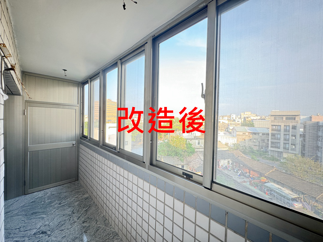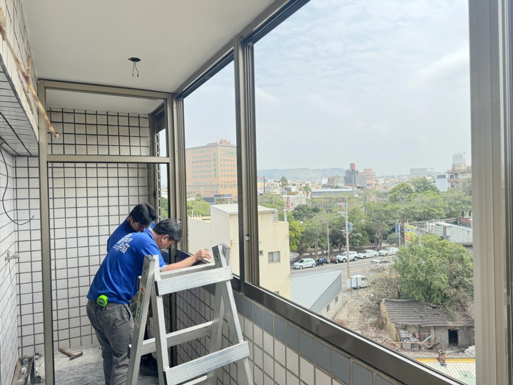 業主家前陽台空間寬敞,計畫將陽台改造成室內空間並有儲藏功能。建議業主可將陽台一分為二,大空間處安裝陽台氣密窗,保持通風和採光。側邊小空間預計為儲藏室,此處對內加裝鋁門和陽台主空間作區格,對外陽台面安裝鋁百葉保持通風,並可阻擋50%光線直射入內,易於保存物品。