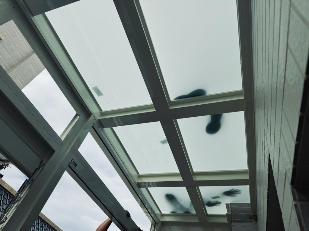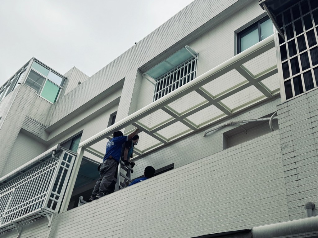 此次玻璃採光罩全部採用膠合安全玻璃,膠合玻璃因中間夾著強韌而富粘著力的中間膜,所以不易在受衝擊力下被貫穿,且破損後其玻璃片不易飛散,因此比其他種類玻璃具較高之耐震性、防盜性、防爆性、防彈性。