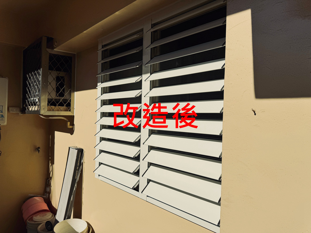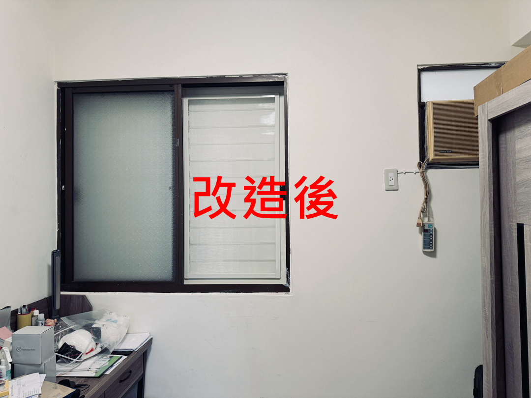 業主的房間原本為一般鋁窗西曬很熱,業主希望能不動原窗戶,又能防曬和加強防盜的方法。經場勘,建議業主使用鋁百葉窗,配合易拆洗的紗窗使用,這樣既能保持通風,又能有效防西曬,同時也提高了安全性。