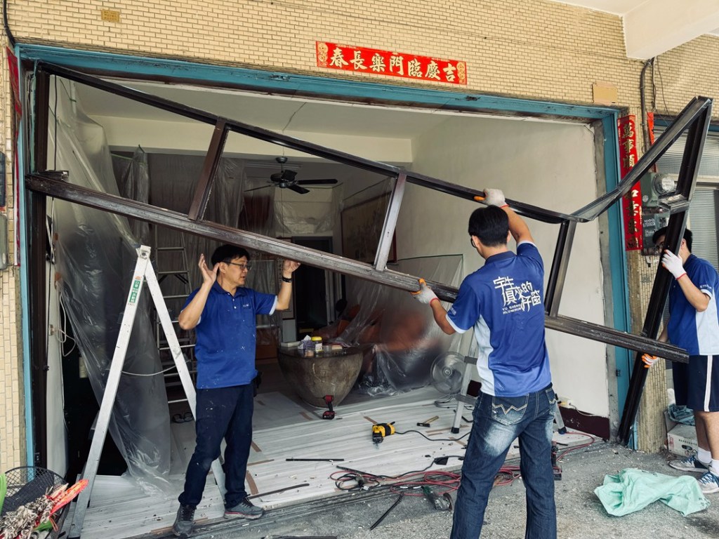 業主家臨路,落塵及噪音的問題希望能換氣密門窗後獲得改善。建議業主可選擇鋁軌式的氣密落地門,鋁軌軌道較銅軌軌道更加強防止落塵進入。玻璃則採用膠合安全玻璃,搭配氣密門加強隔音效果。落地氣密窗施工僅需一天半,當日可入住。