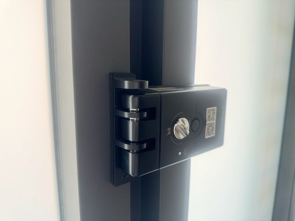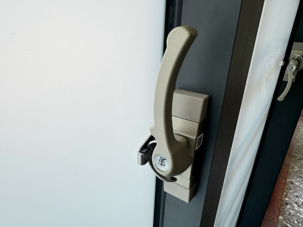 業主後加裝電子鎖方便進出,實現現代化簡約生活。