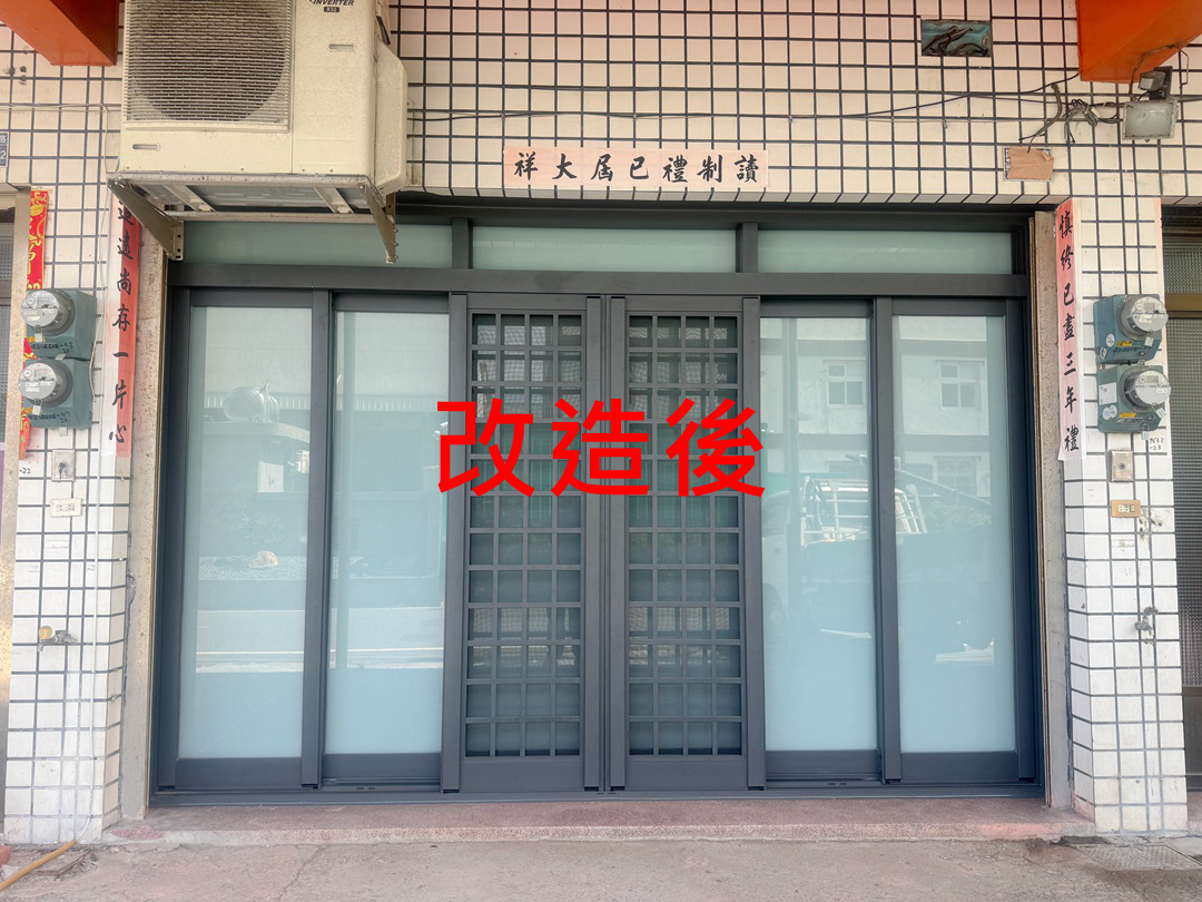 由於業主家鄰近馬路噪音較大,傳統落地門無法阻擋噪音,希望安裝氣密落地門改善。經討論,業主決定將鐵捲門和舊鋁門全拆除,再安裝氣密落地門。