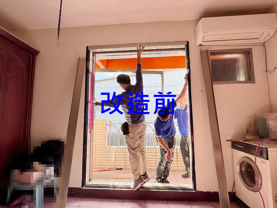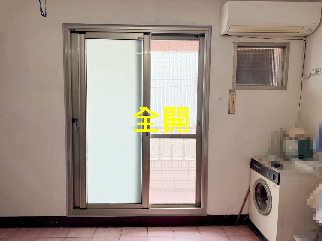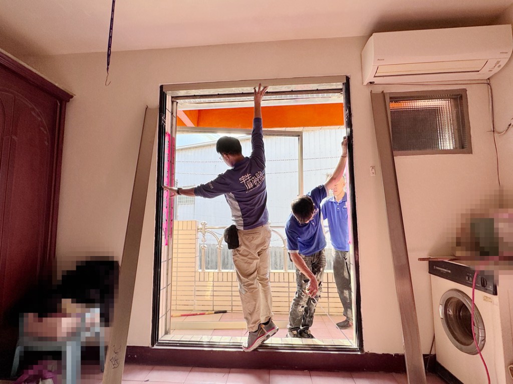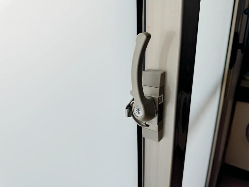 業主主臥房在二樓,臨路邊車聲吵雜,希望更換氣密落地窗後能改善隔音。客製化選擇,依業主使用習慣來安裝省力門把方向,使用方式更人性化。業主選擇香檳色氣密落窗搭配白膜膠合安全玻璃,並加選鎖匙款紗門。