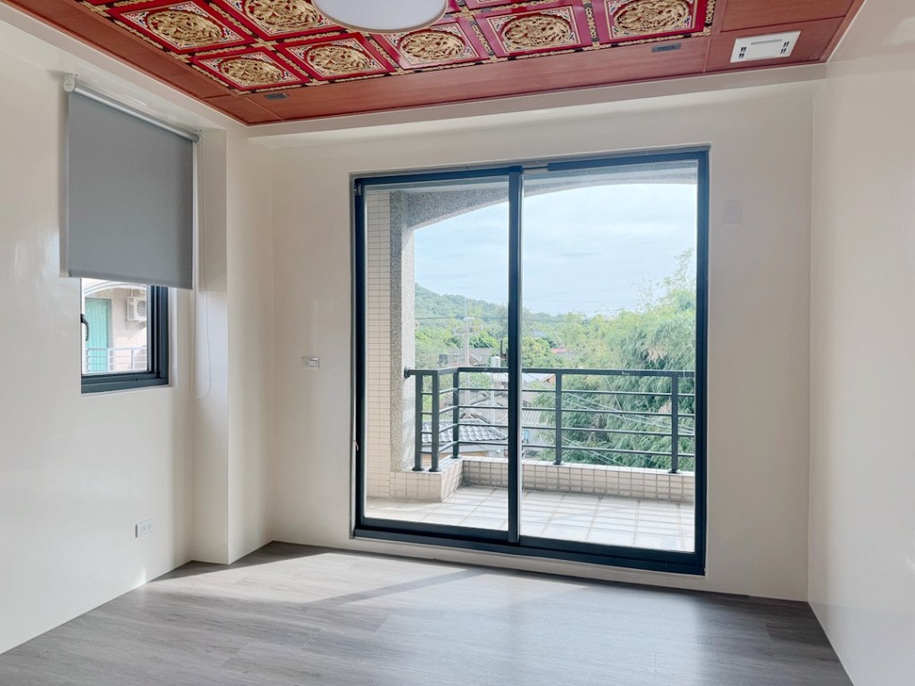 業主家三樓神明廳重新規劃,正面落地窗希望搭配整體建築風格,採用消光黑色的氣密窗框。玻璃則採用透明玻璃保留自然光,光亮的神明廳可為家庭帶來即冠晉祿的旺運。