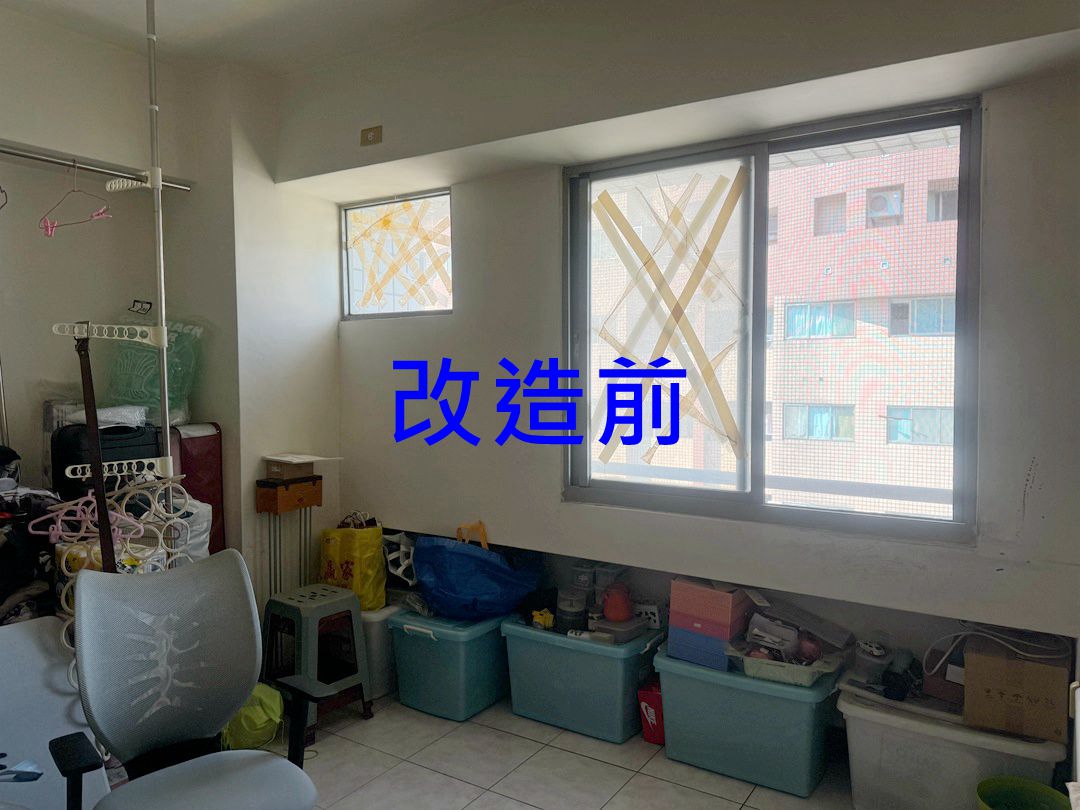 台中西屯的王先生全室整修,因高樓層颱風有感鋁窗強烈搖晃很不安全,想更換抗風更好的氣密窗,加強抗風防颱效果。此次房間更換氣密窗以包框方式,不拆框不動泥作。乾式施工包框新窗,氣密效果好,施工快速半天可完工。