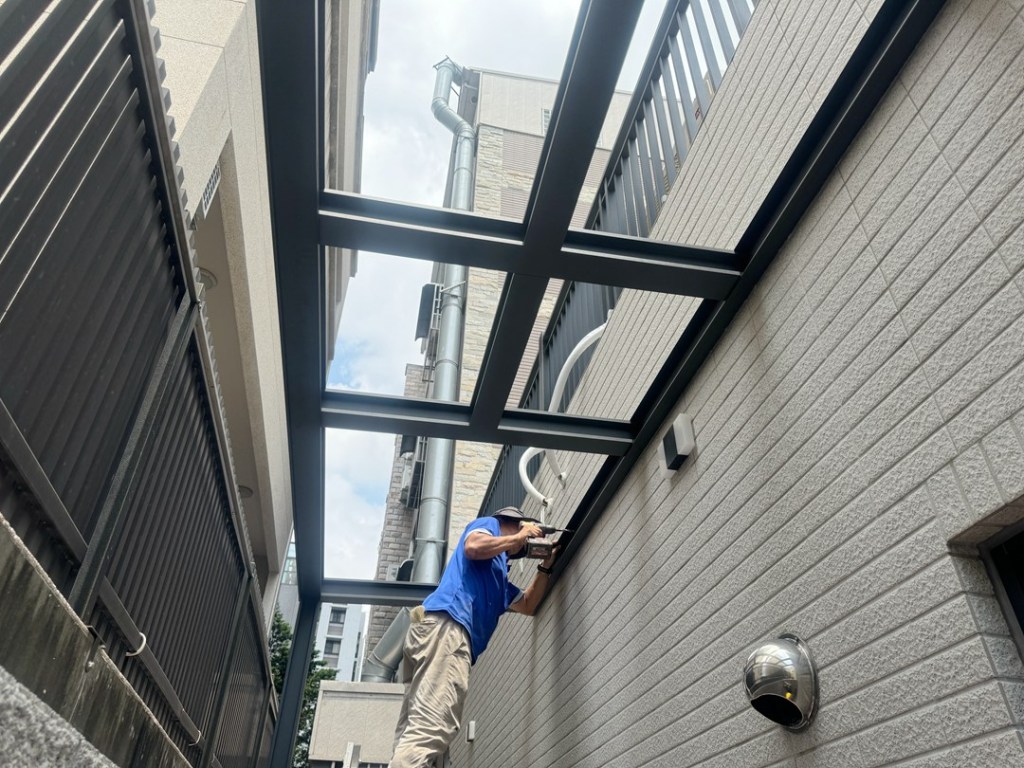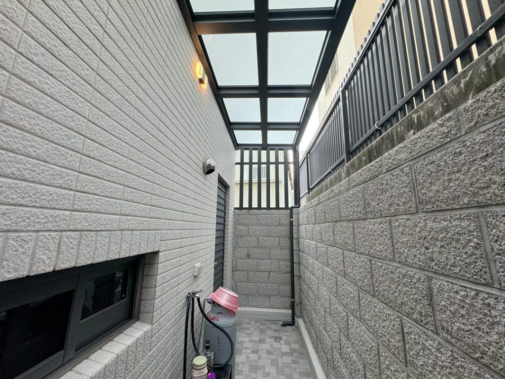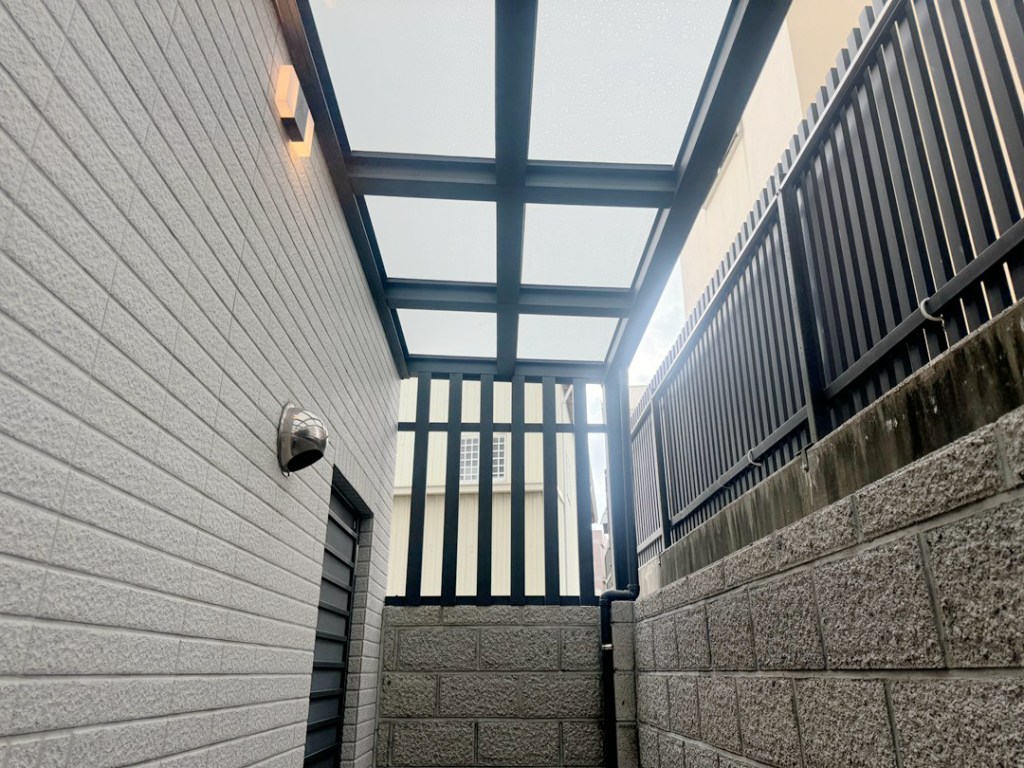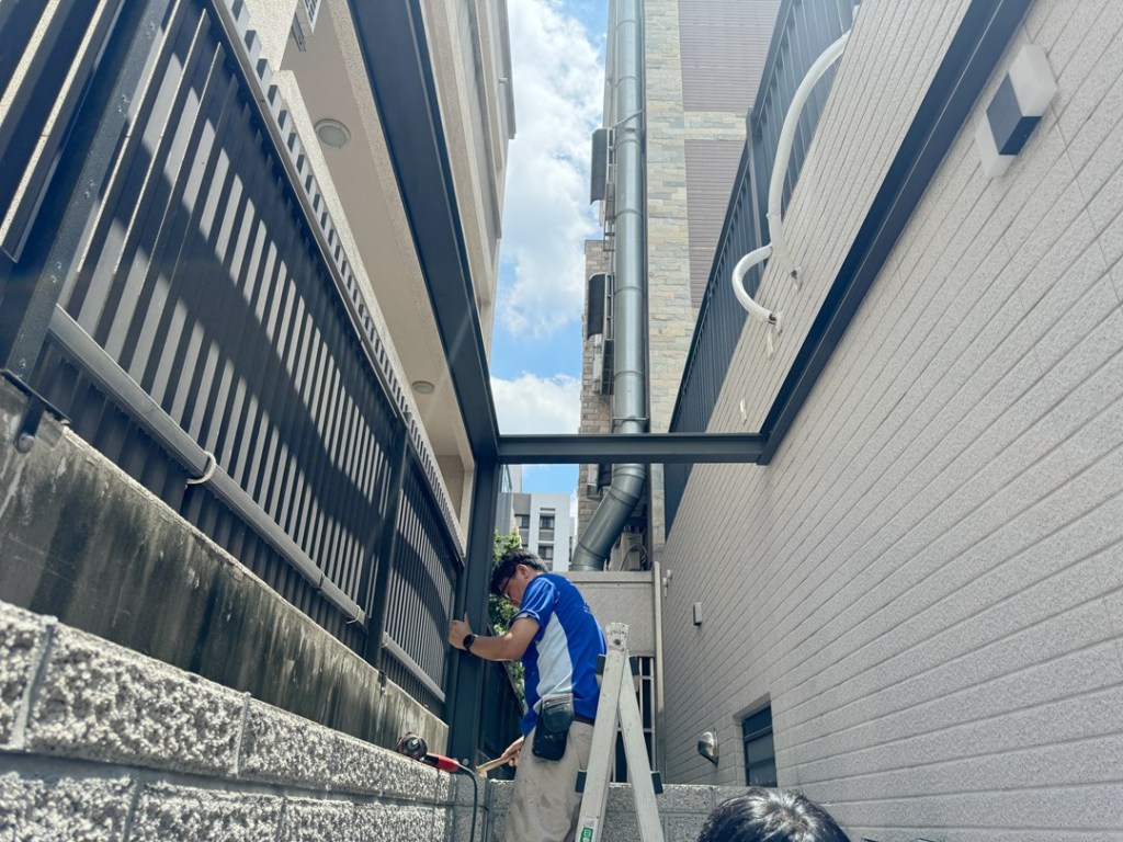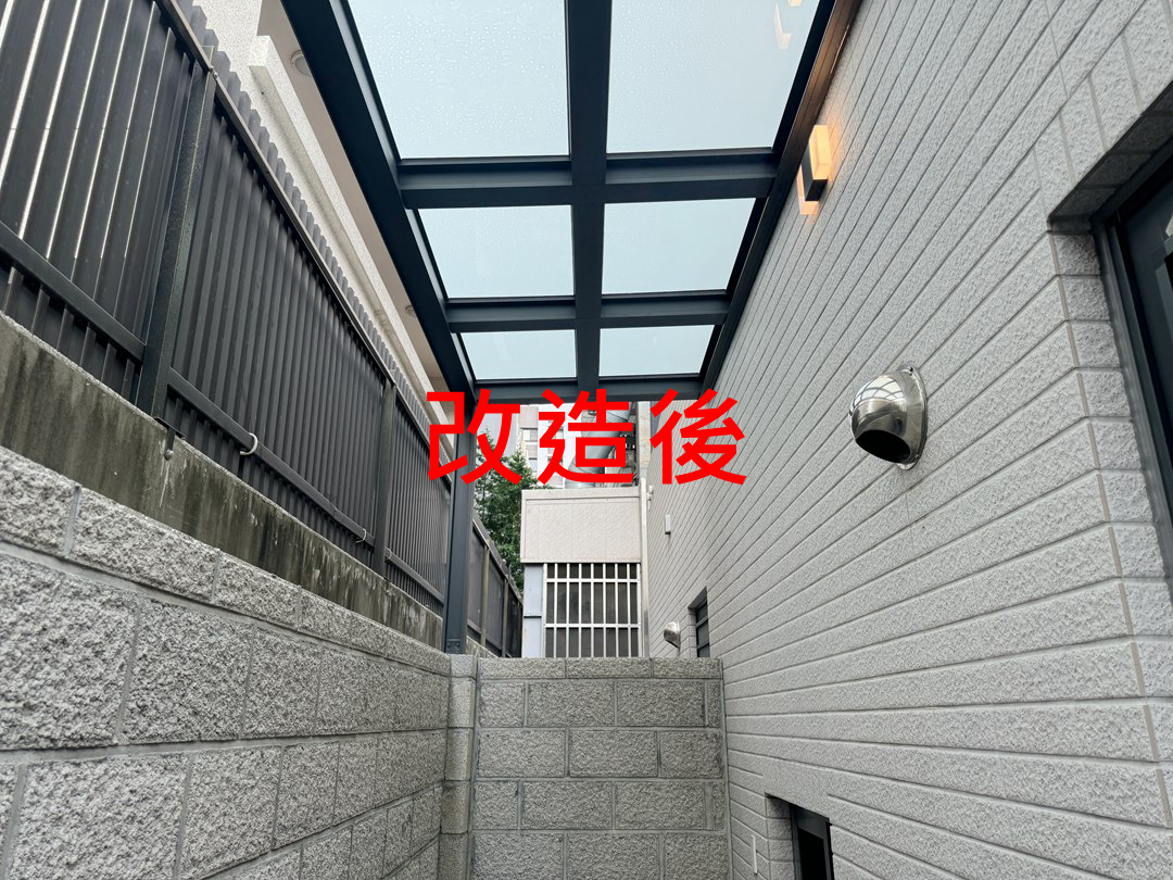 業主1樓後陽台和鄰居相鄰,後側鄰居早已有防盜格柵。業主最主要希望陽台在搭建採光罩後能保有光線和通風,和後鄰居交界處保持原狀,左右鄰側則封單側防盜即可,建議上層搭建玻璃採光罩並搭配單側防盜格柵。
