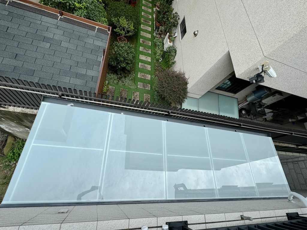 玻璃採光罩上層採用膠合安全玻璃。由於膠合玻璃中間夾有強韌且具粘附力的中間膜,它在受到衝擊時不容易被穿透,而且破裂後玻璃片不易飛散,在耐震、防盜、防爆方面比其他類型的玻璃更具優勢。