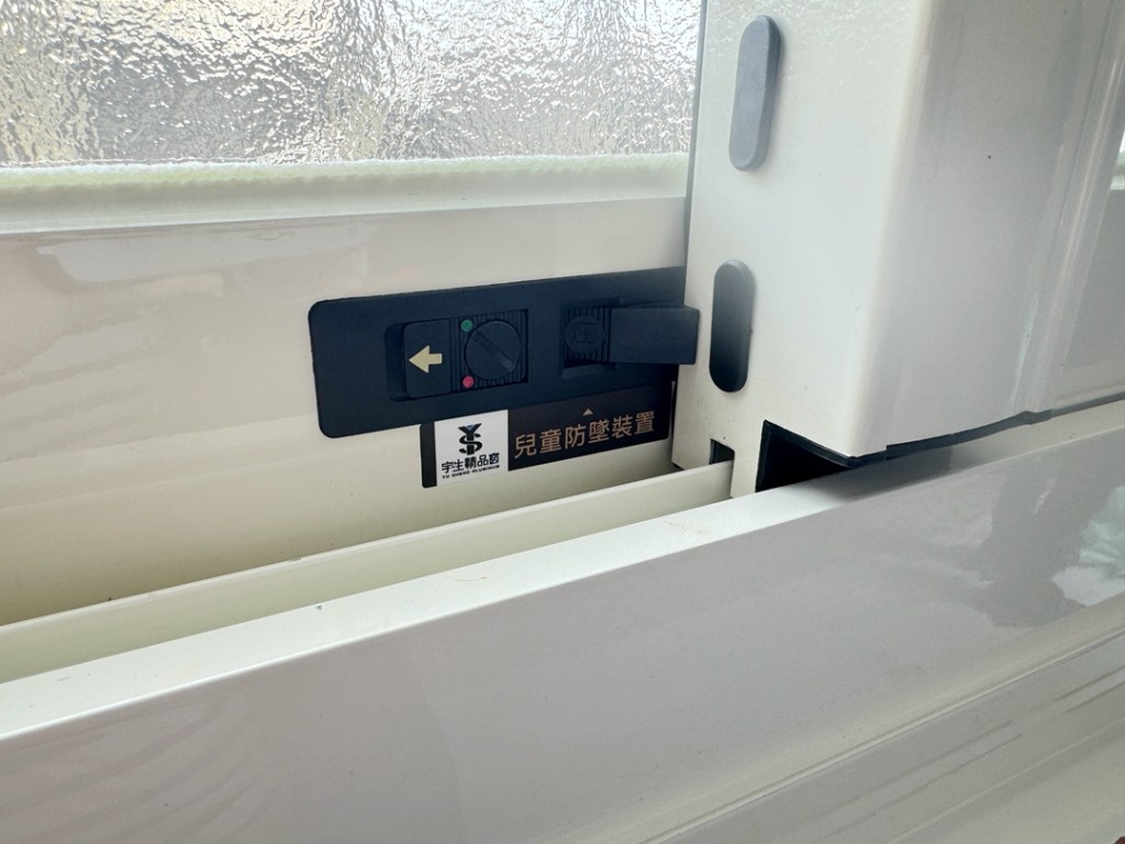 通風門玻璃扇開啟 ①單手輕拉白色栓 ②單手輕鬆上下推開啟