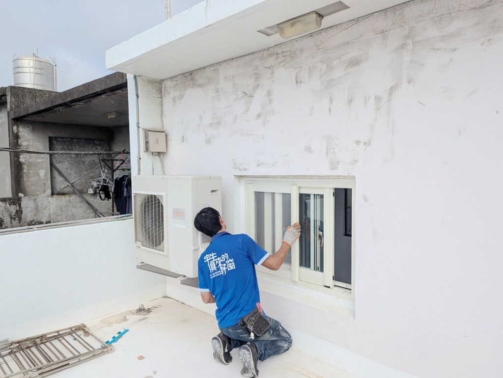 住在台中大甲的莊先生住家門窗老舊,想先更換頂樓鋁窗。建議以包框方式更換氣密窗,不拆框不動泥作。乾式施工包框新窗,氣密效果好,施工快速半天可完工。