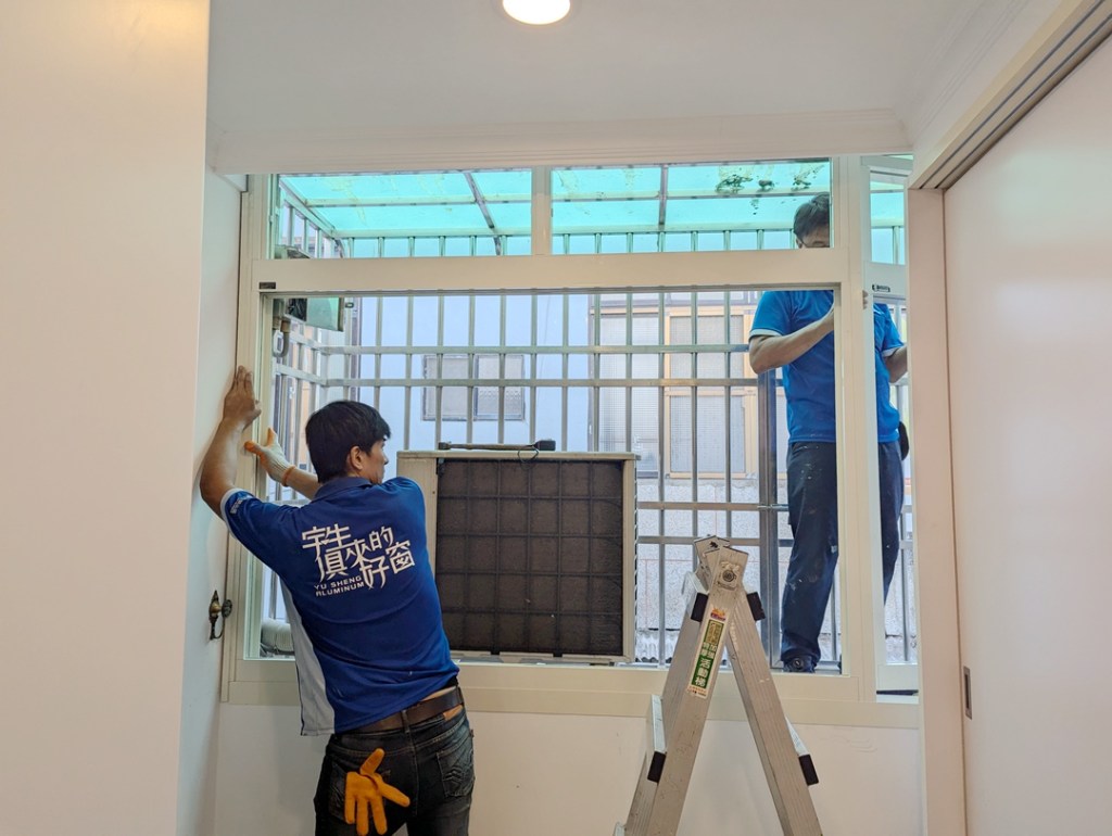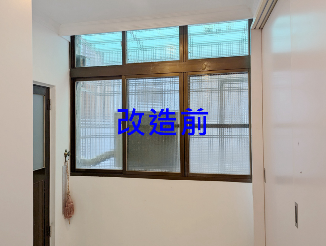 住在台中大甲的莊先生,房間位於三樓想更換氣密效果更好的氣密窗。因室內裝潢系統櫃遮住部份窗戶,窗戶只剩3/4見光面。建議將原來的四拉窗改為二拉氣密窗搭配固定玻璃窗,在系統櫃遮蔽地方,改為固定玻璃窗。氣密窗片加大,讓房間看起來更寬敞。此次房間更換氣密窗以包框方式,不拆框不動泥作。乾式施工包框新窗,氣密效果好,施工快速一天可完工。