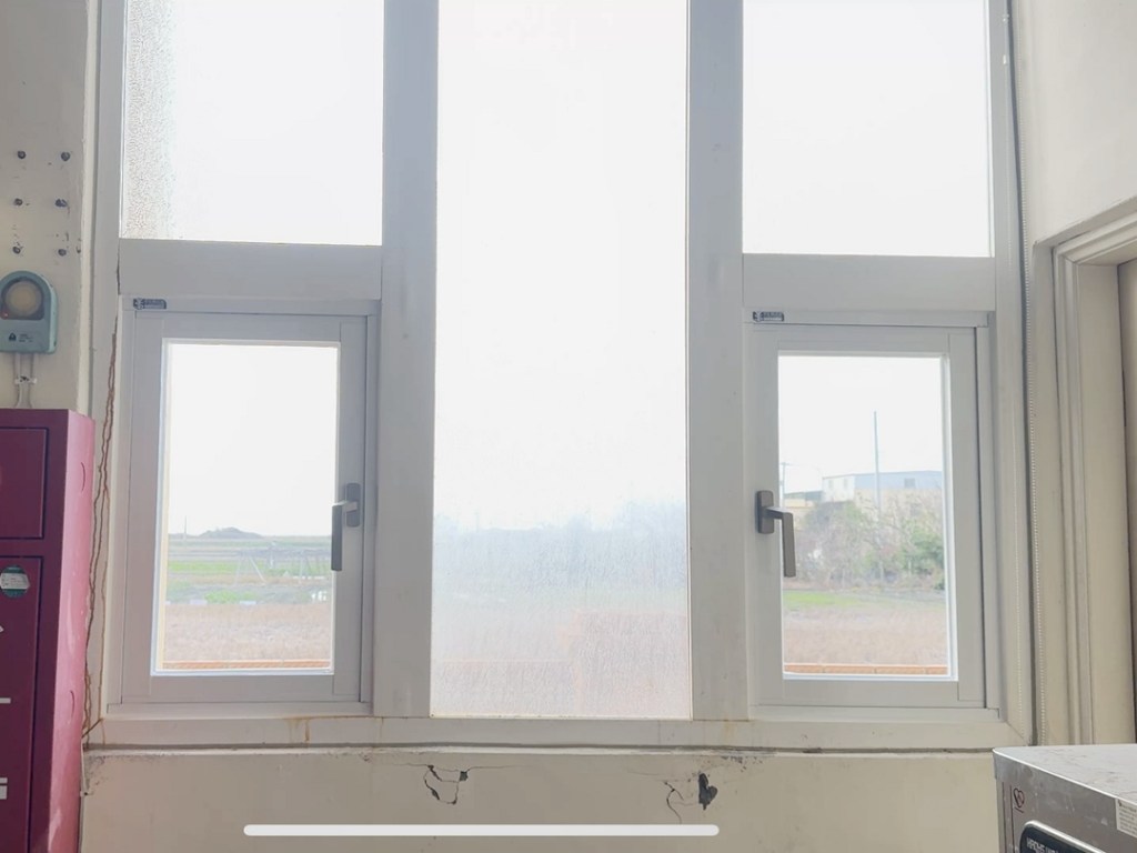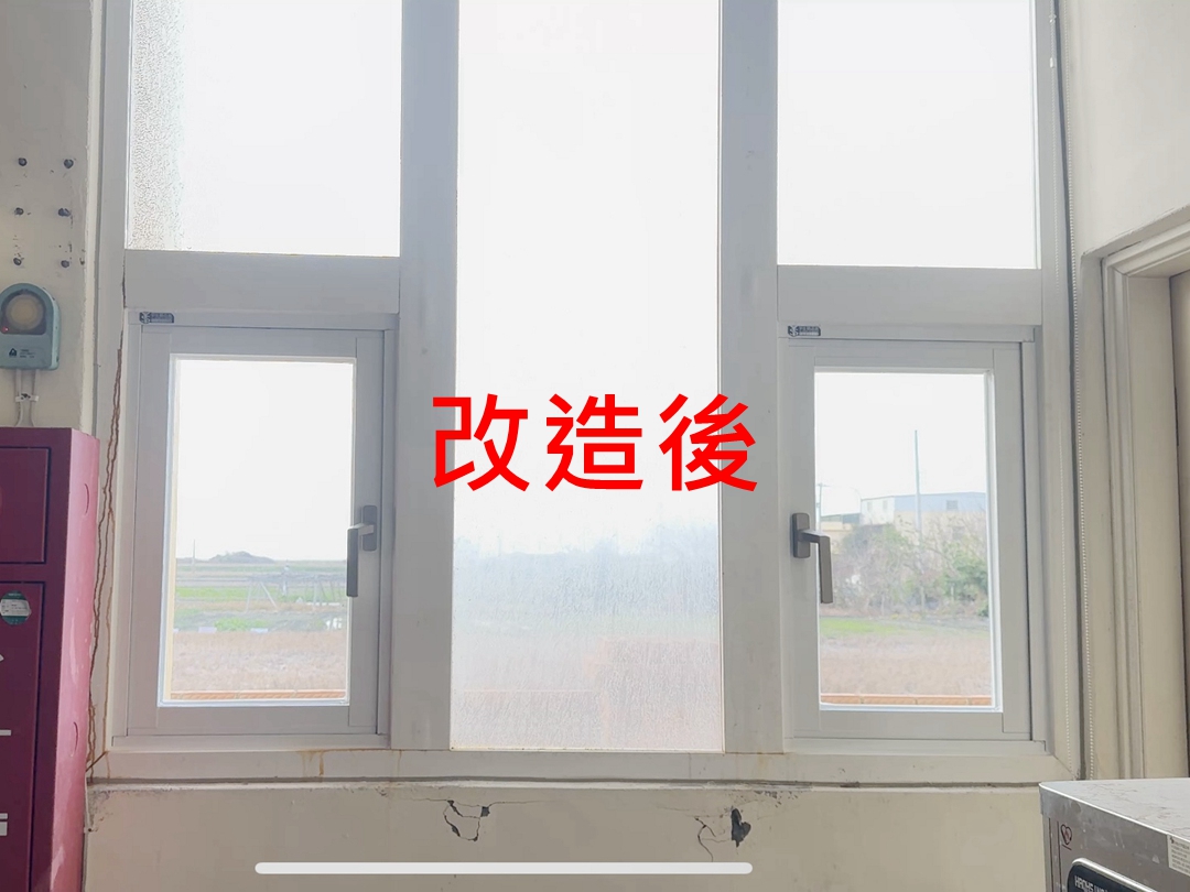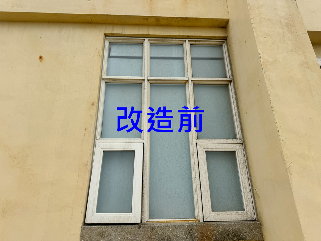 大甲福德里社區活動中心一樓推射窗損壞需更換新窗。經評估固定窗維持不變,僅更換推射窗即可。