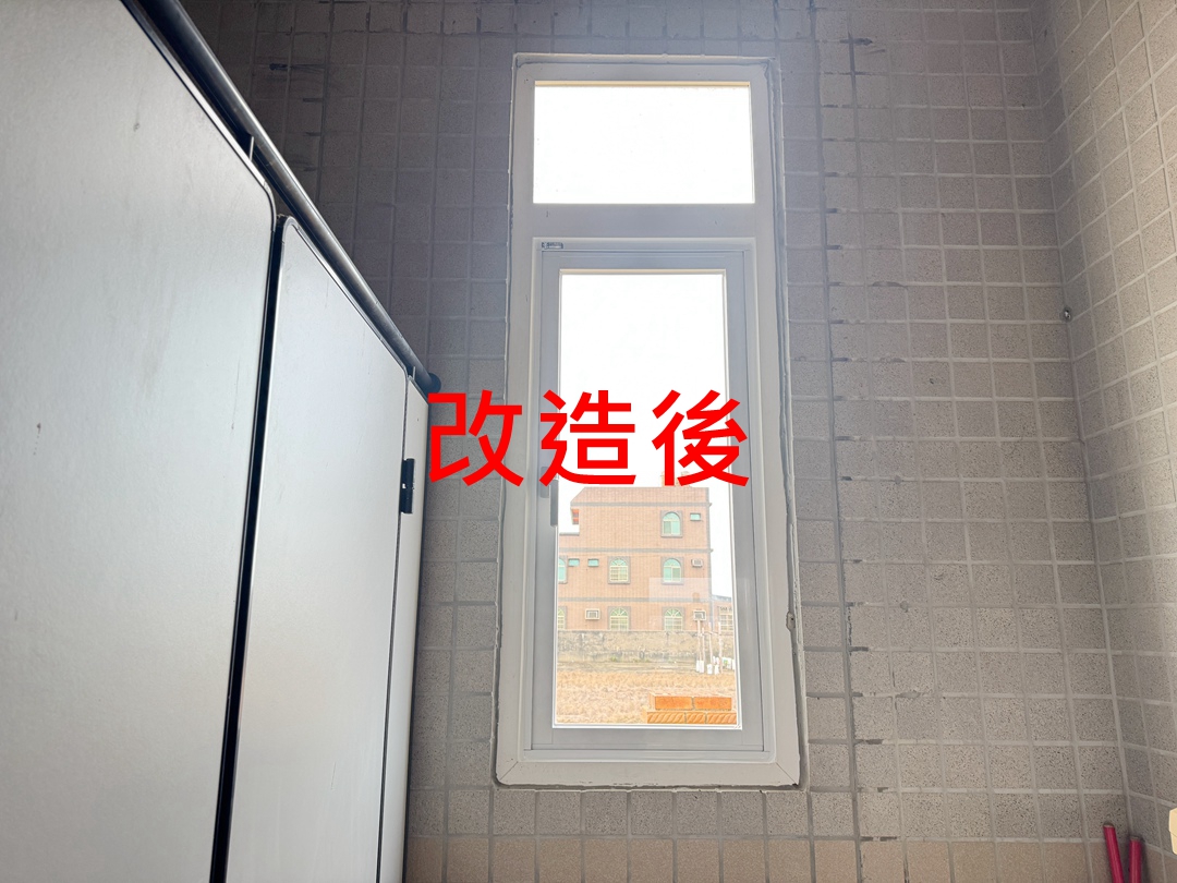 大甲福德里社區活動中心一樓廁所的推射窗損壞需更換新窗。經評估固定窗維持不變,僅更換推射窗即可。