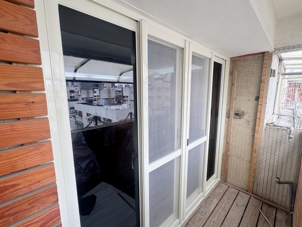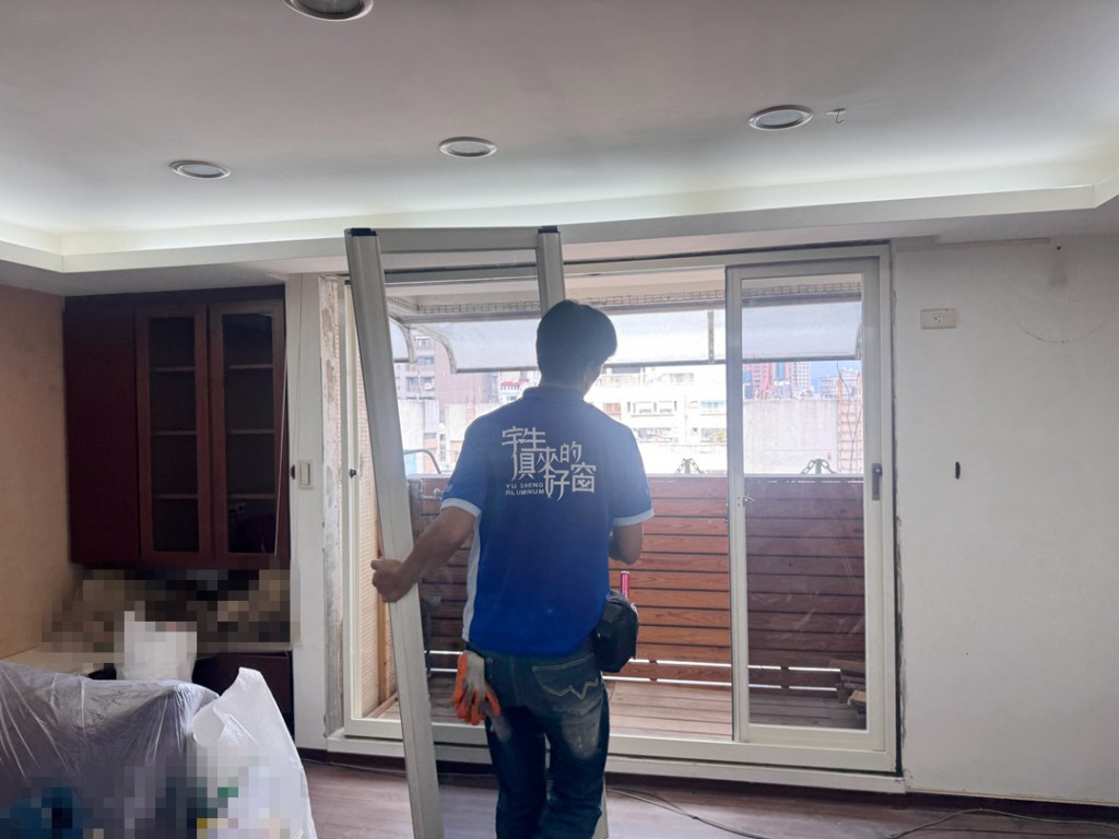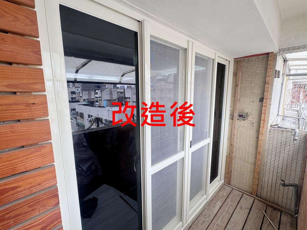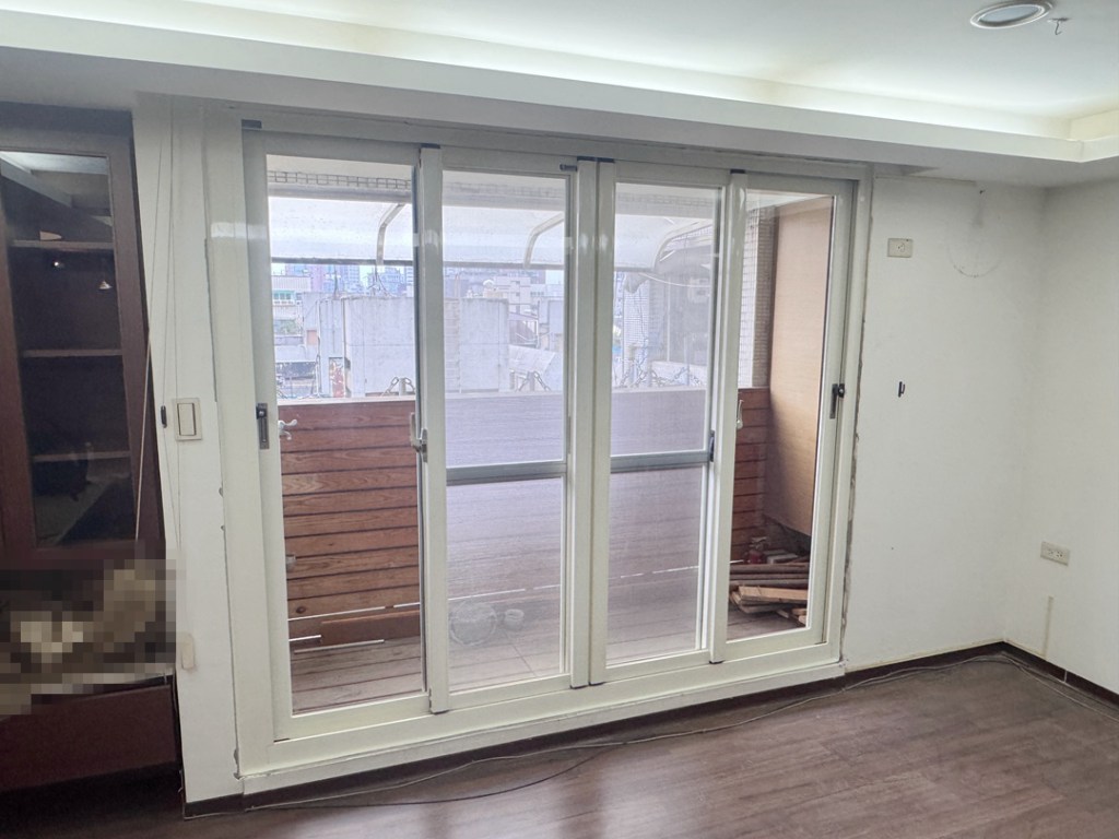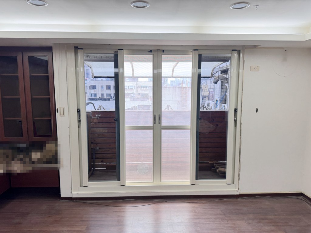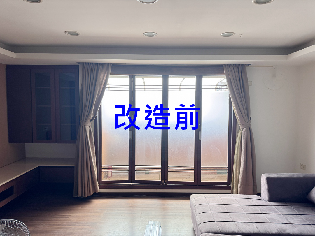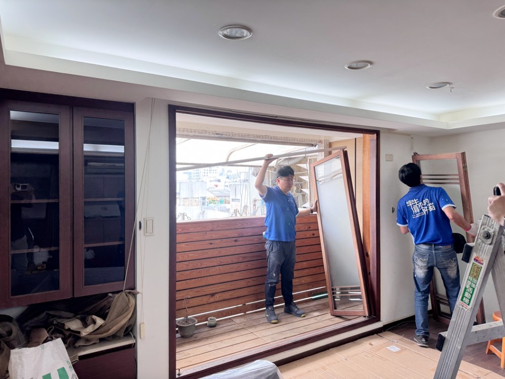 原本業主客廳設有木質落地窗,但因一樓餐廳油煙味濃重,木窗無法有效隔絕異味,故全面更換為氣密落地窗。為避免未來木材受潮或蟲蛀問題,建議原有木窗框一併拆除。施工二天完成,期間無空窗,不影響室內使用與安全。