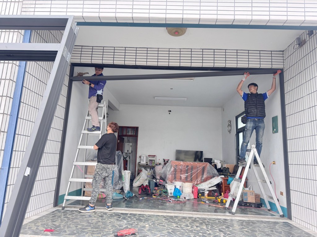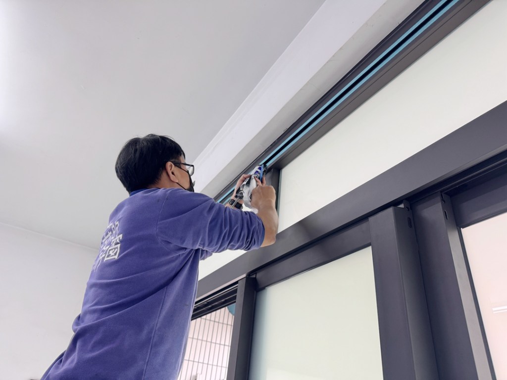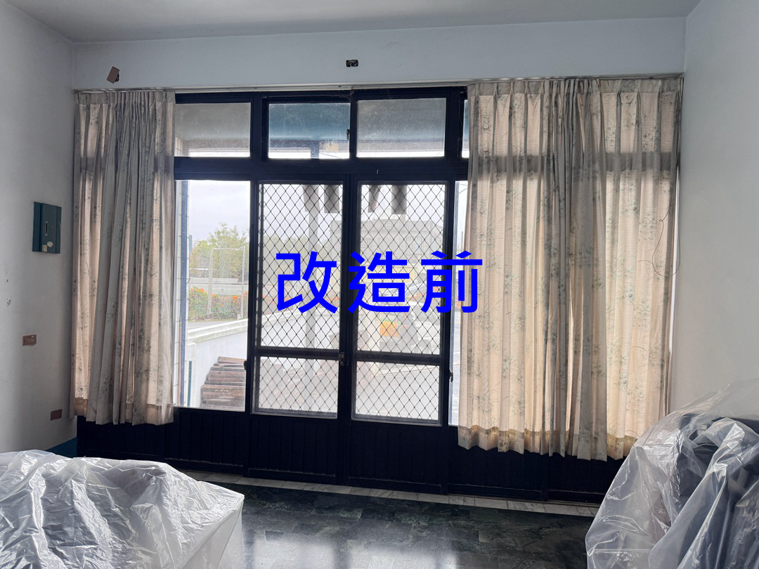 業主家原客廳門窗為舊式玻璃鋁門,因臨路位置一直有噪音問題,業主希望提升隔音效果。經評估建議更換為六拉式氣密落地門窗。該窗型搭配鋁軌道可進一步強化氣密效果,適合用於一樓客廳等隔音氣密需求空間。此次以乾式施工施作,施工二日內完成,無空窗期。