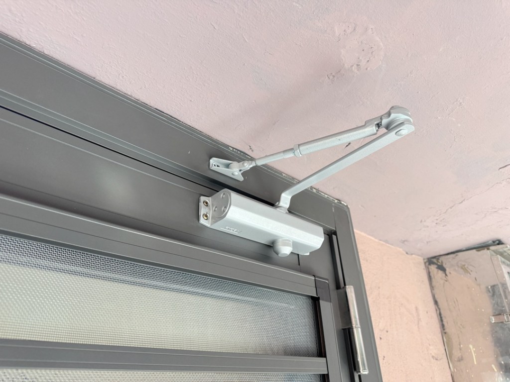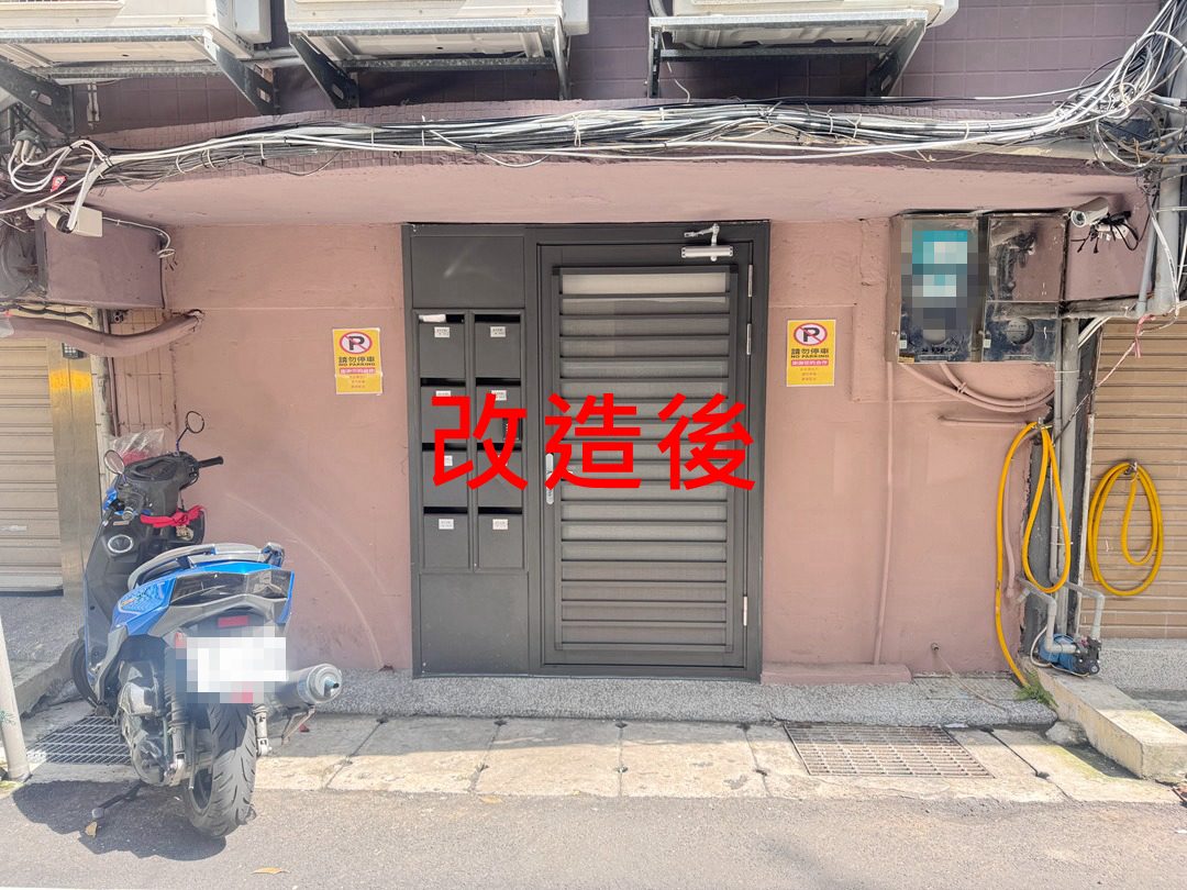 業主選擇了與原有鐵門相近的鐵灰砂色,確保新門與信箱區顏色一致,整體性佳。