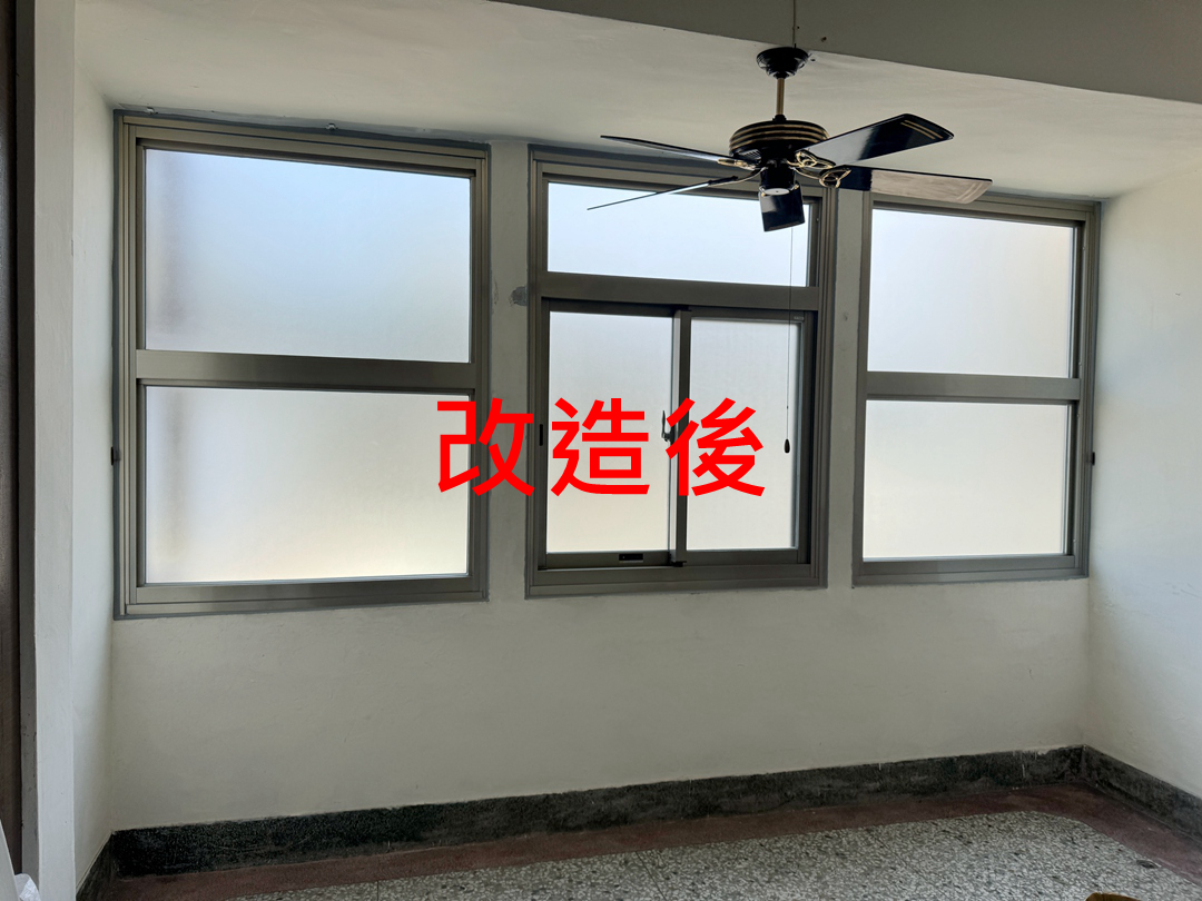 為了讓窗戶更簡潔俐落,原本三座獨立的二拉氣密窗進行了重新配置。左右兩側改為固定玻璃窗,中間則保留為可開啟的二拉氣密窗,保有通風功能,同時讓整體窗面視覺更一致。
