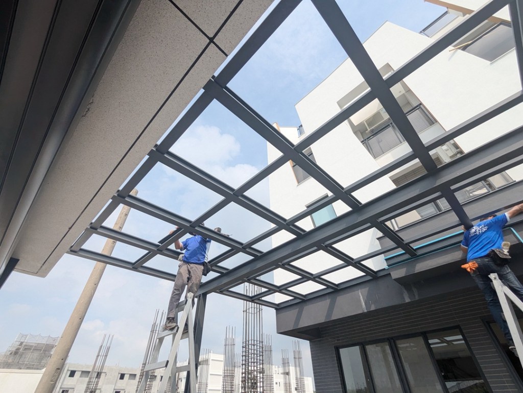 需求:業主一樓前院車庫想搭建採光罩,希望保持通風和採光。