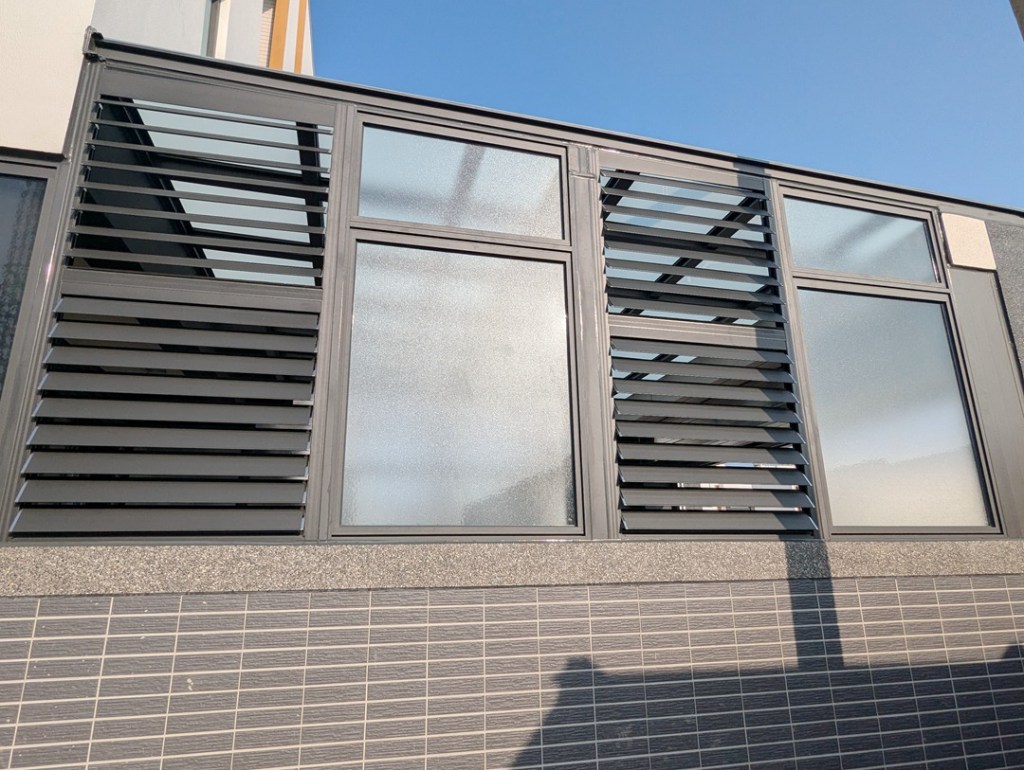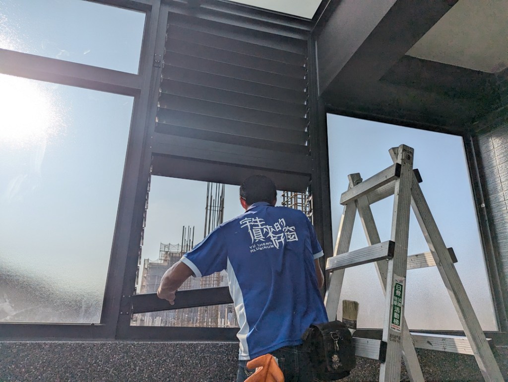 解決方案:建議採用玻璃採光罩搭配鋁百葉窗,堅固耐用且通風性佳。