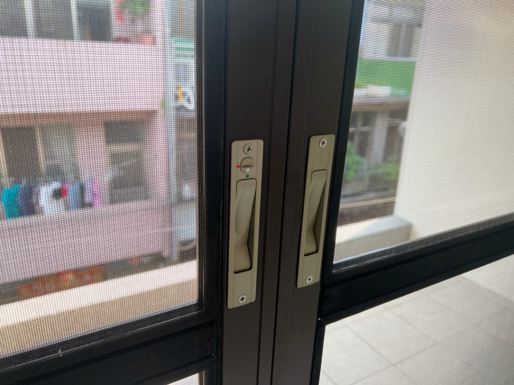 專利三點連動把手安裝於內框中,可增強內逼加壓固定門片,提升氣密抗強風強颱。