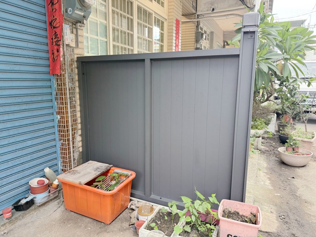 常見以格柵/鋁板/玻璃作隔間,因業主常澆水,建議採用鋁板面板,避免植栽澆水時影響鄰居側。鋁合金隔間不僅堅固耐用,亦不怕淋雨和颱風強風。高度可依業主需求客製,並可於當天完成施工。