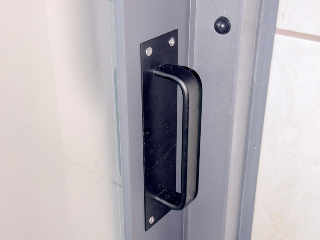 業主窗框選用鐵灰砂色,搭配霧面玻璃,隔音效果好,而且符合業主隱私性好的要求,整體設計簡單大方。