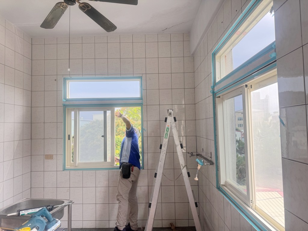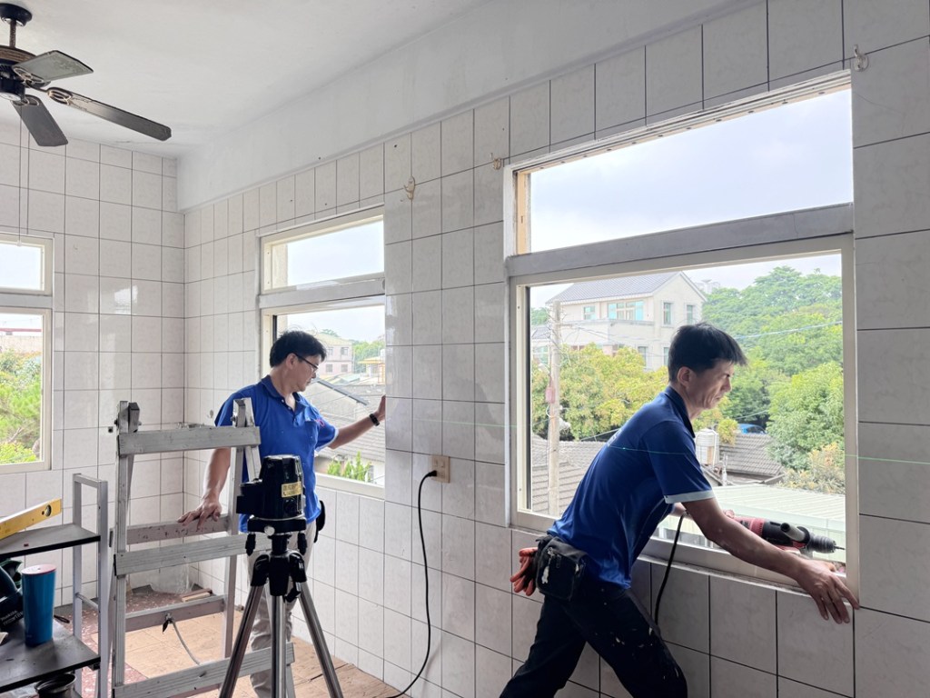業主選擇全拆框的溼式施工方式,此作法優點是保持原窗尺寸不受影響。