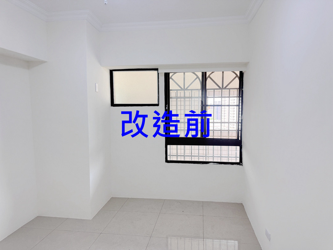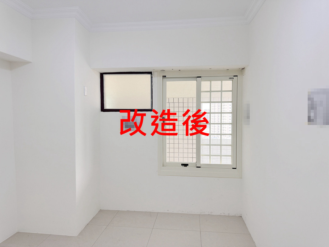 業主選擇乾式施工的包框,少粉塵的施工可當天完成。乾淨簡潔的乳白色系鋁框,搭配透明玻璃,明亮大方。