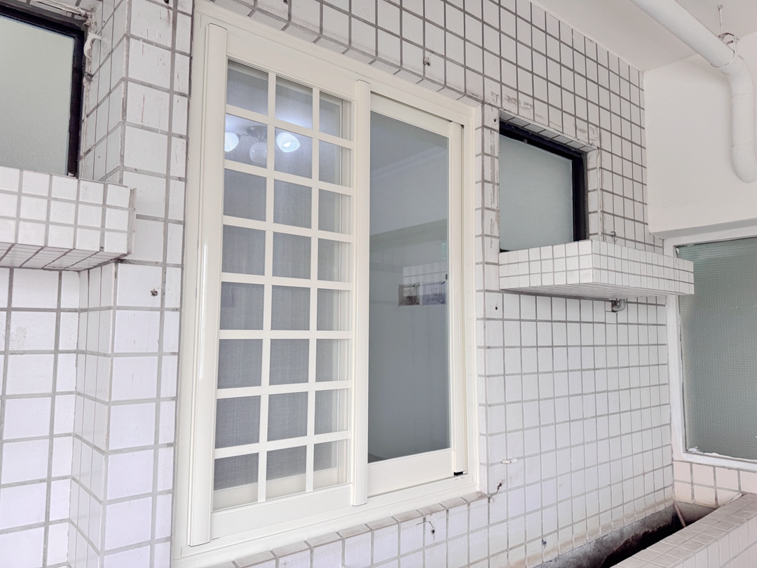 業主選擇乳白色框搭配透明玻璃,通透舒適的空間感。全程以乾式施工法包框,作一窗拆一窗,無空窗期。比起傳統溼式施工需動泥作,乾式施工的工法快速乾淨,少粉塵好清潔。