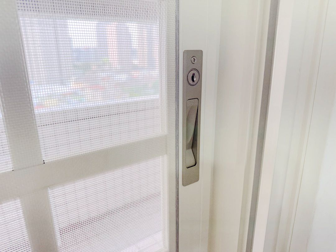 房間和陽台的窗戶要求加強氣密和隔音效果,並且希望客廳臨近社區公共區域的地方,紗窗能加強防盜。玄關大門拆除舊門後,改為有自動關門的鋁製玄關門。廚房部份需解決通風和門把位置不方便的問題,一併更換三合一通風門。