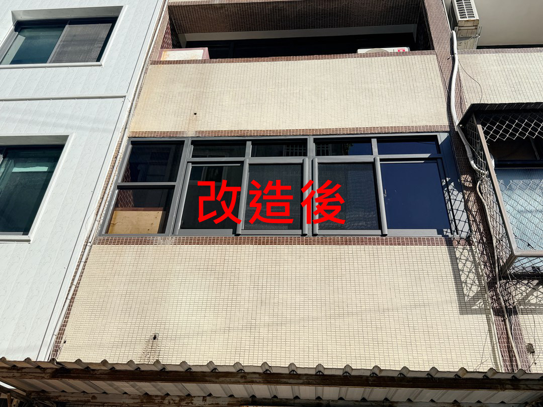 業主選用鐵灰砂色窗框,搭配茶色強化玻璃減少陽光直曬的亮度熱度,達到業主希望室內不要這麼亮的需求。改造後,原本的陽台變成舒適又防雨的室內空間,更加舒適。