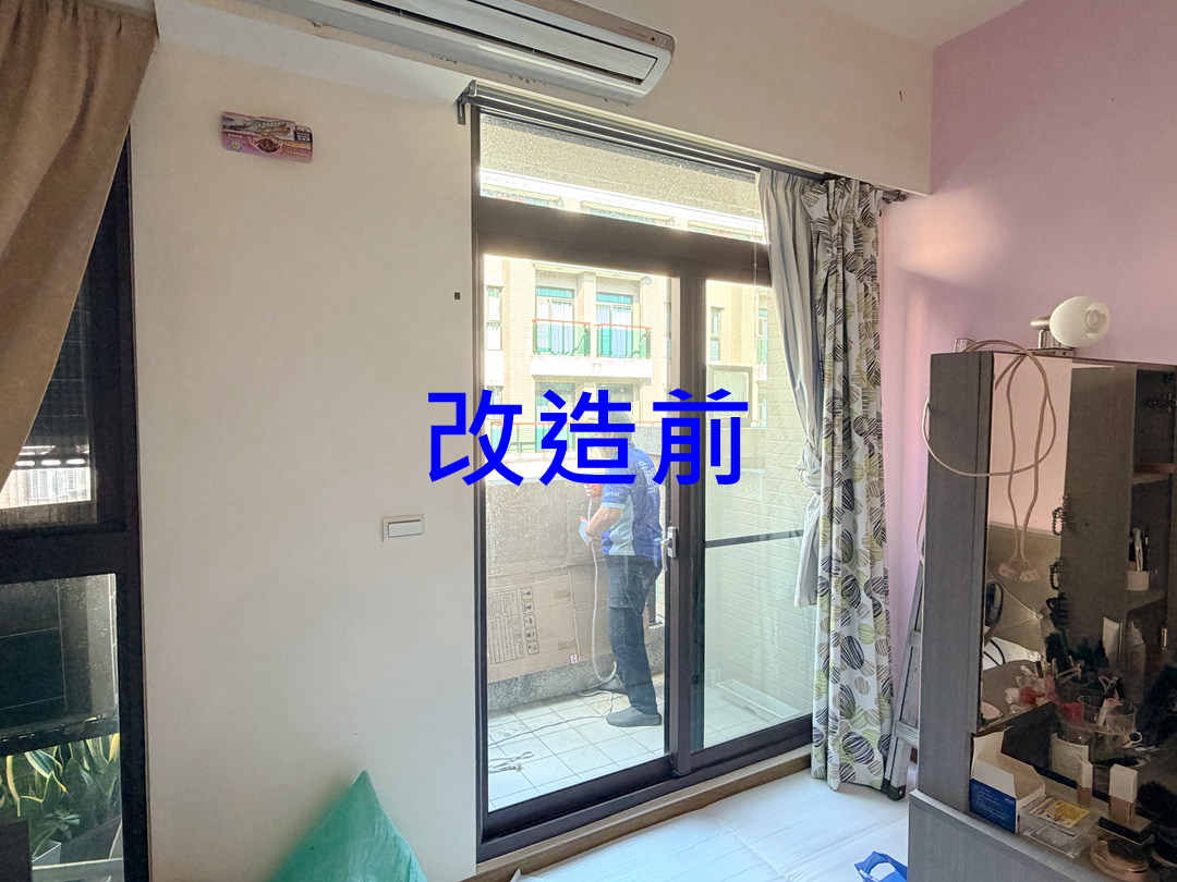 解決方案:因為業主王先生住家位於海線冬天風超大!原來落地窗已無法抵抗強烈東北季風,建議在不拆原窗再加裝一道氣密落地窗,雙重防護讓防風跟隔音效果更好。