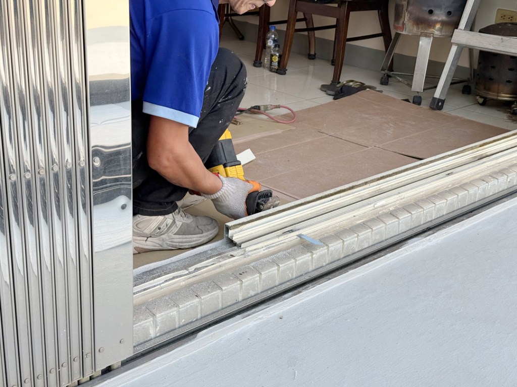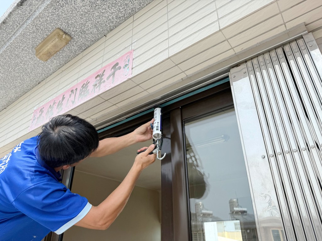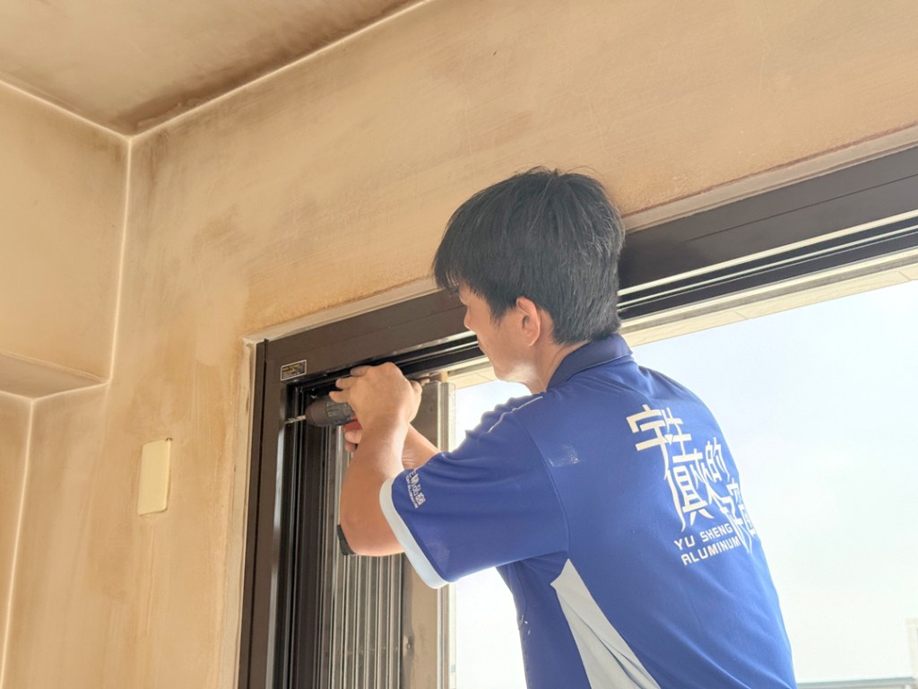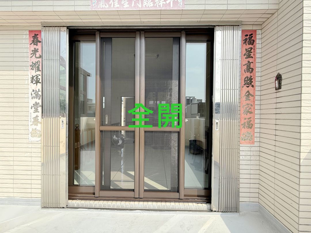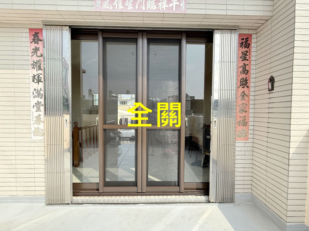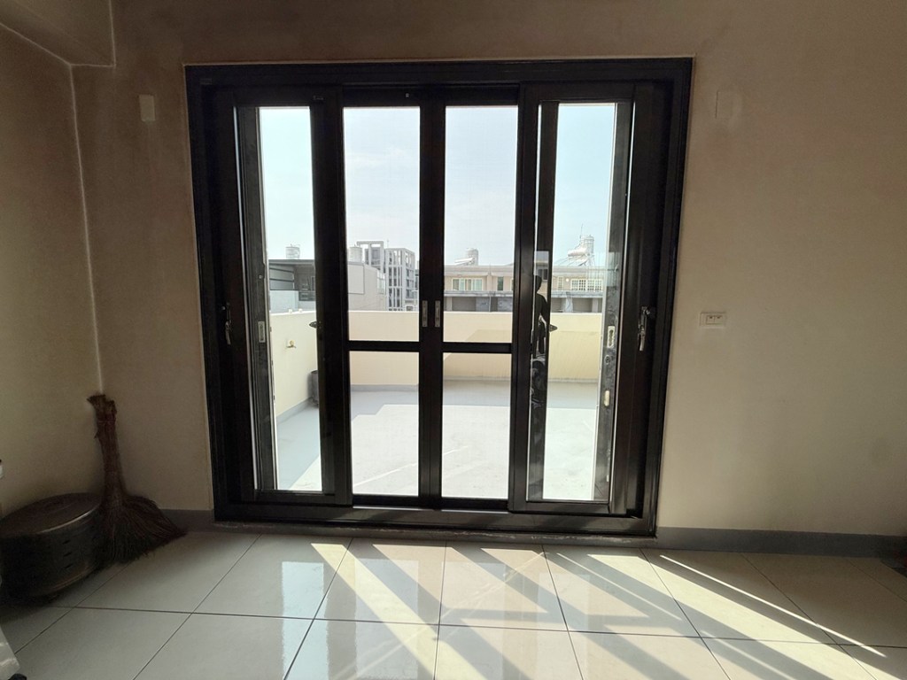 需求:台中外埔的黃先生家神明廳位於四樓,迎風面常感傳統落地窗抗風性不夠,要求更換抗風更強的氣密落地窗。