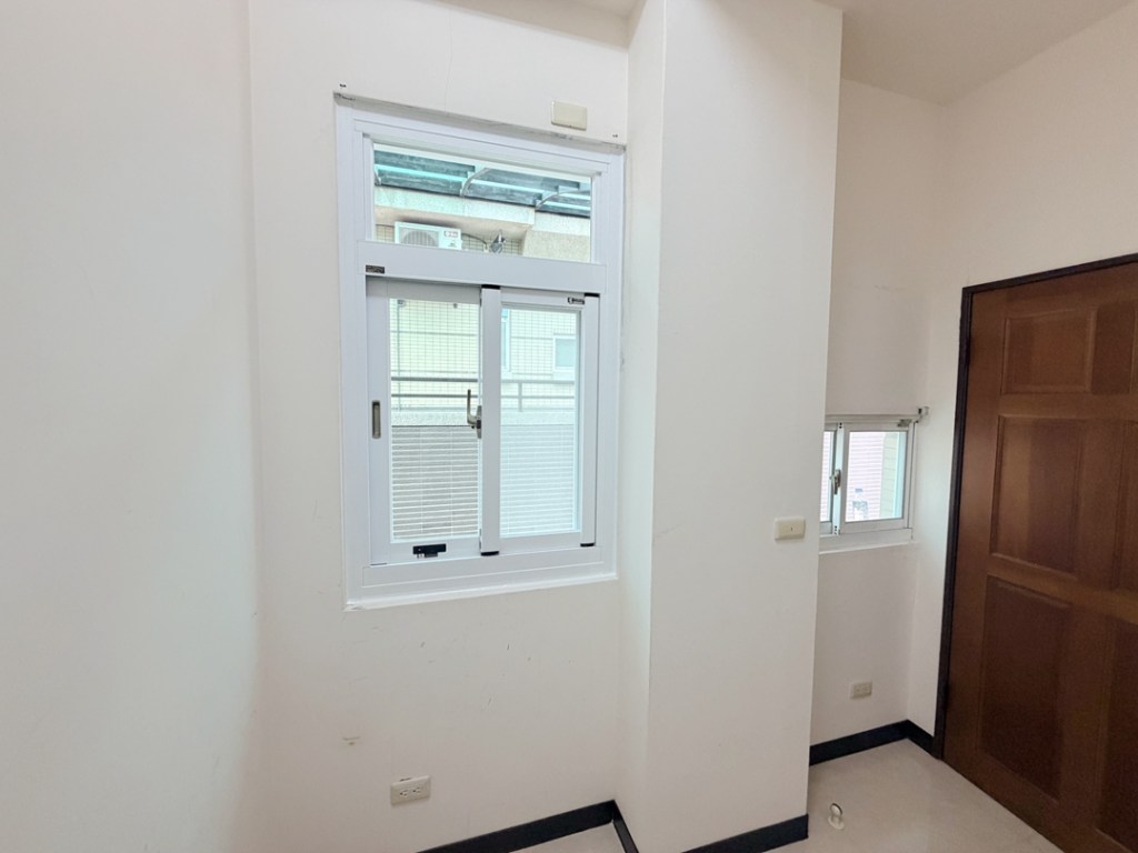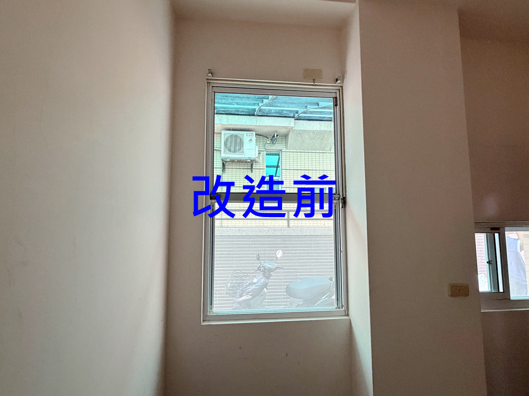 業主選擇快速好整理的包框不拆框施工方式。窗框選用純白色,搭配透明玻璃,整體設計明亮簡潔。