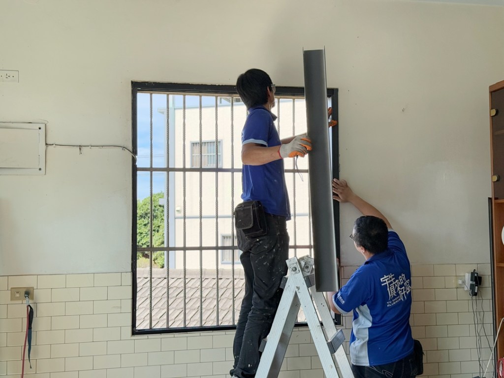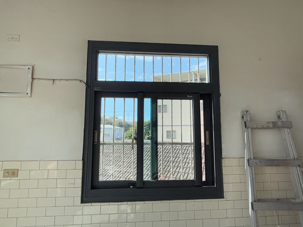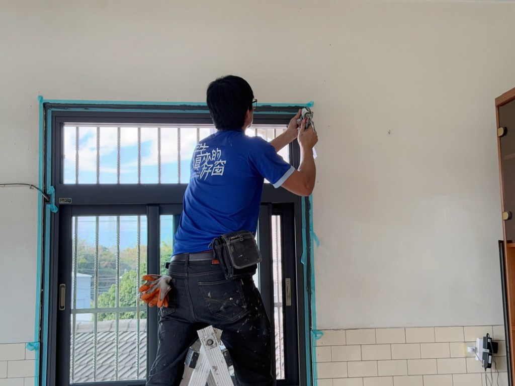 業主選擇快速好整理的包框不拆框施工,窗框選用鐵灰砂色,搭配綠色玻璃,當天完成。