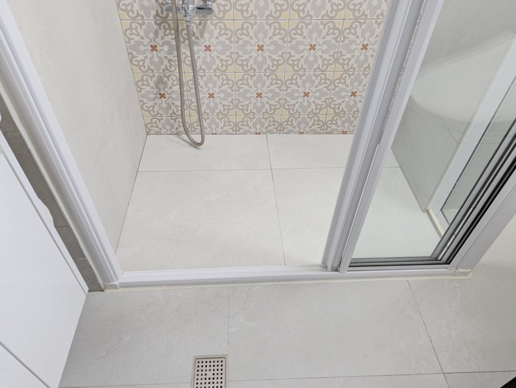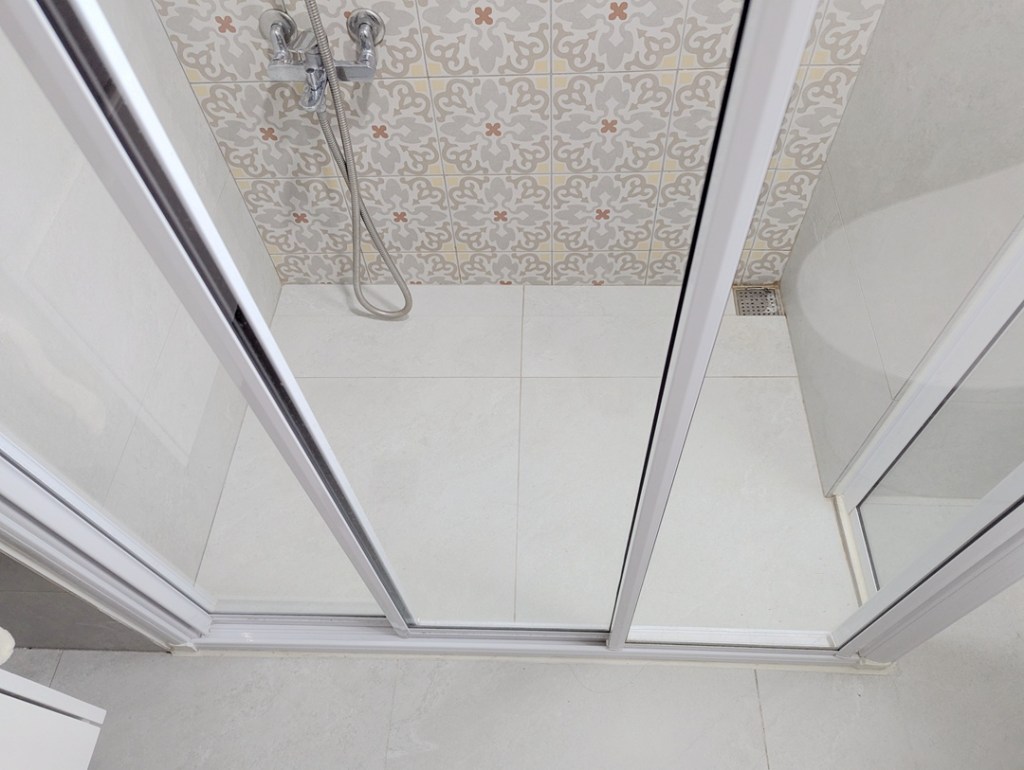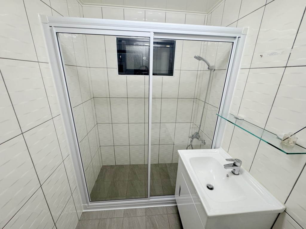 解決方案:依浴室空間建議仍延用一字三拉型式的淋浴門,施工半天完成。