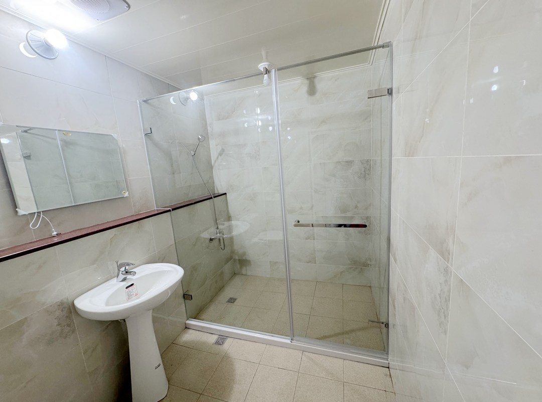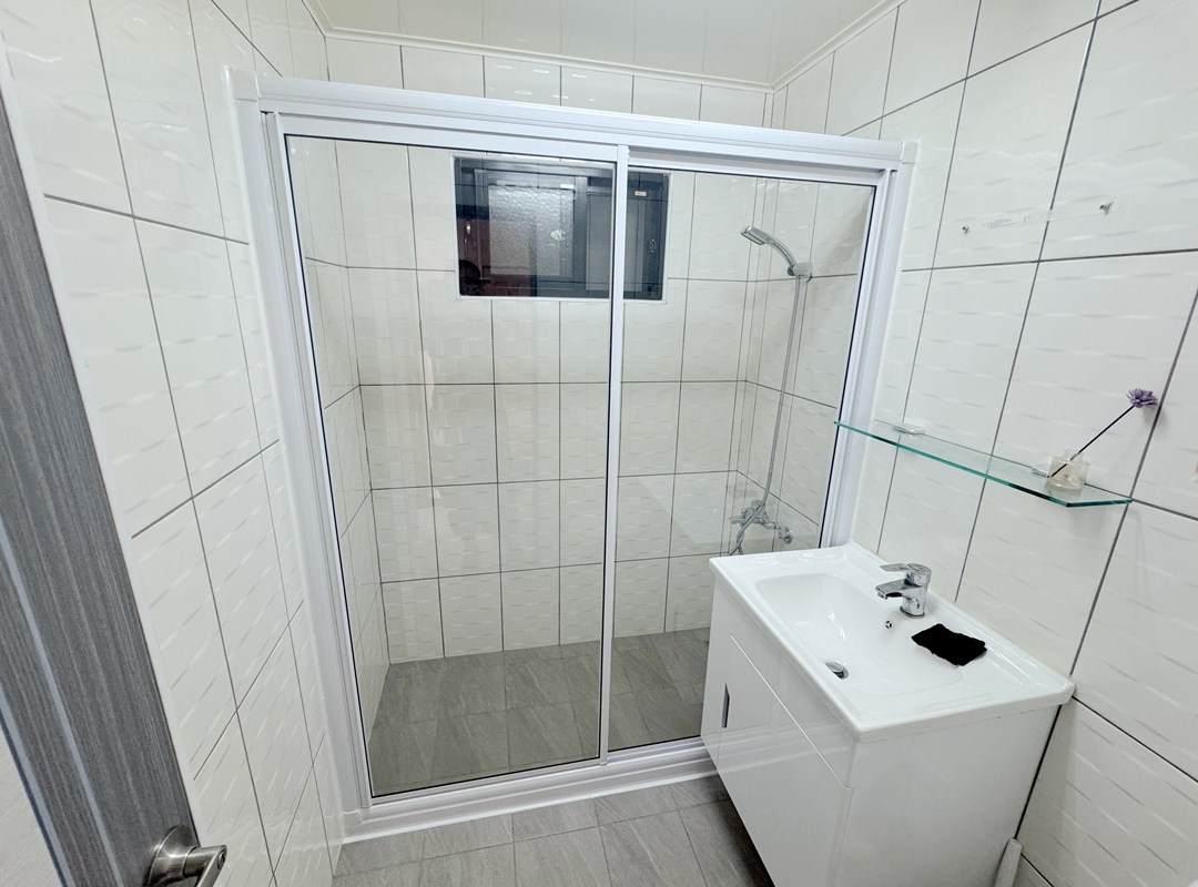 解決方案:依浴室空間建議仍延用一字三拉型式的淋浴門,施工半天完成。