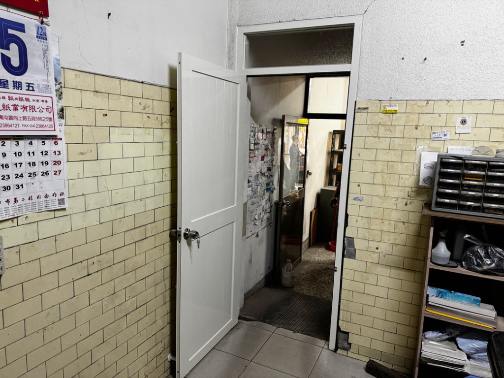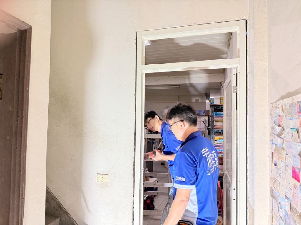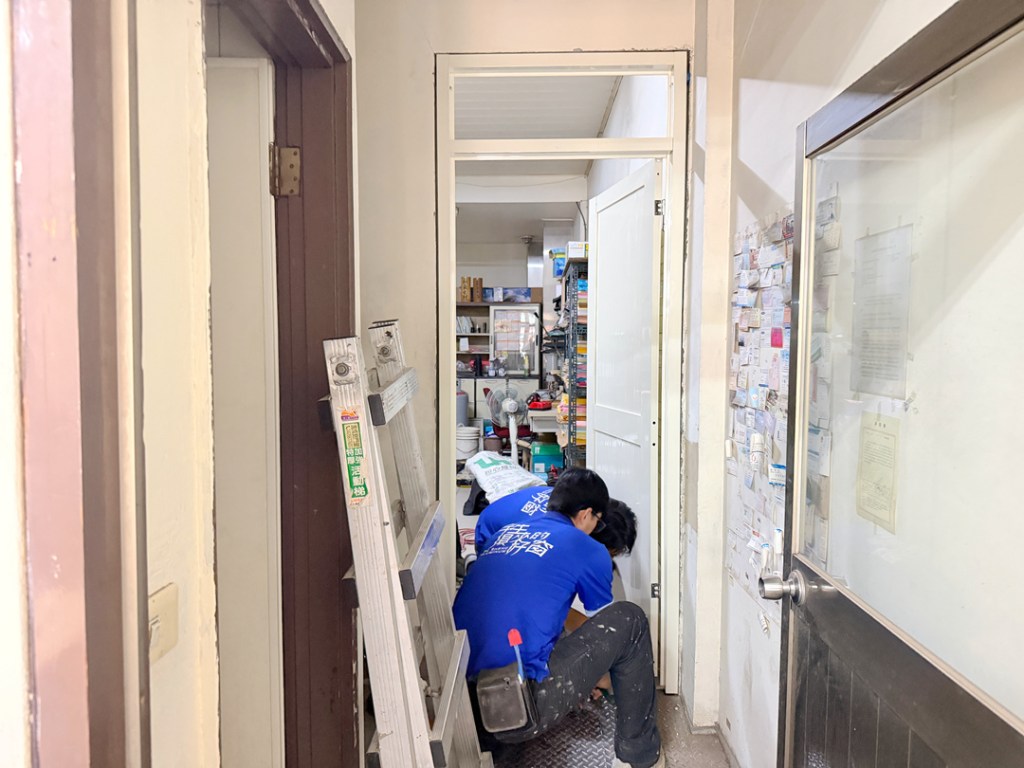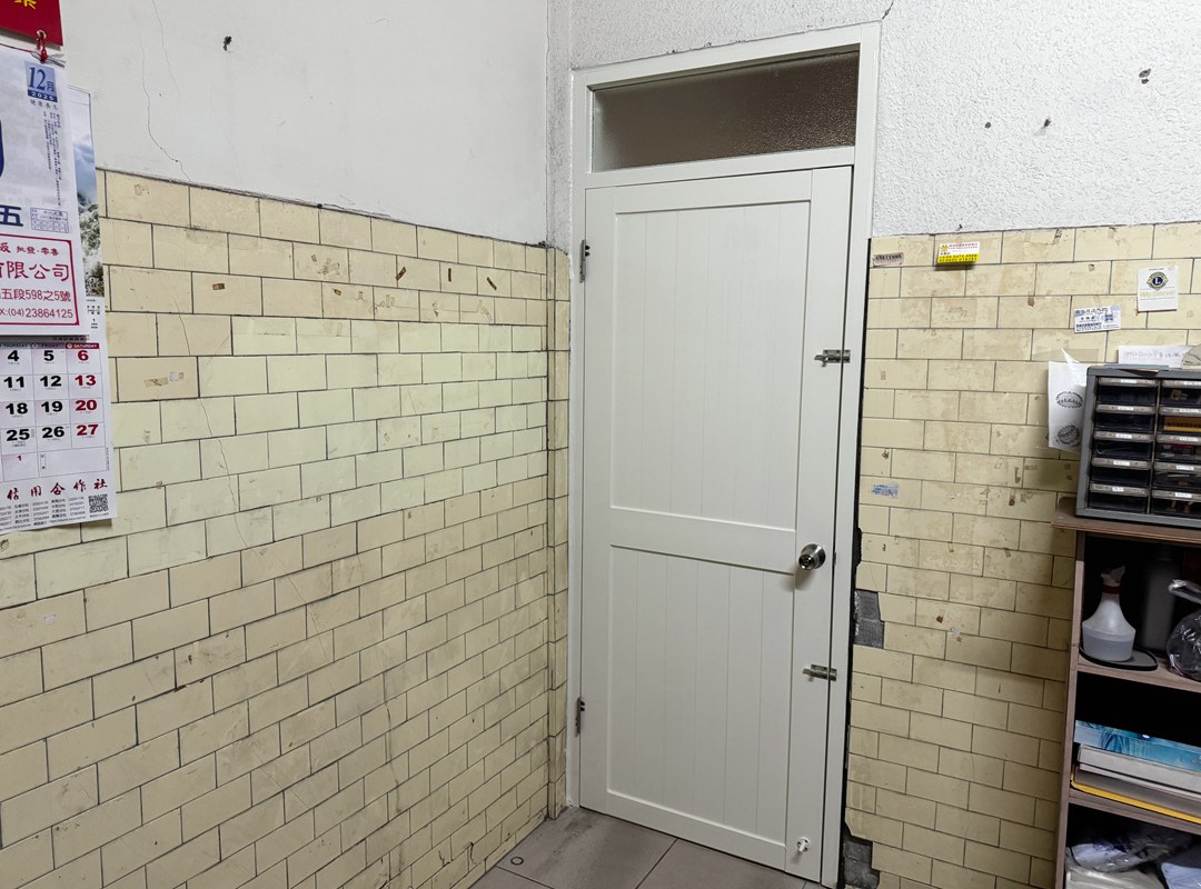 此次業主選擇乳白色鋁板門片,搭配喇叭鎖和輔助鎖。