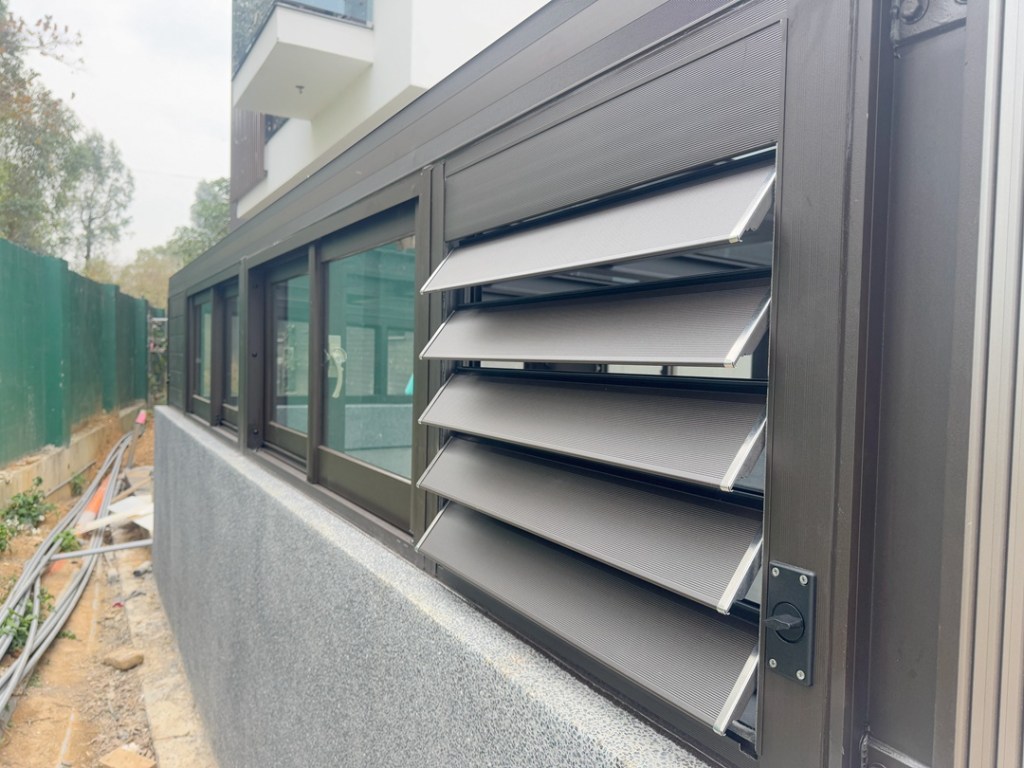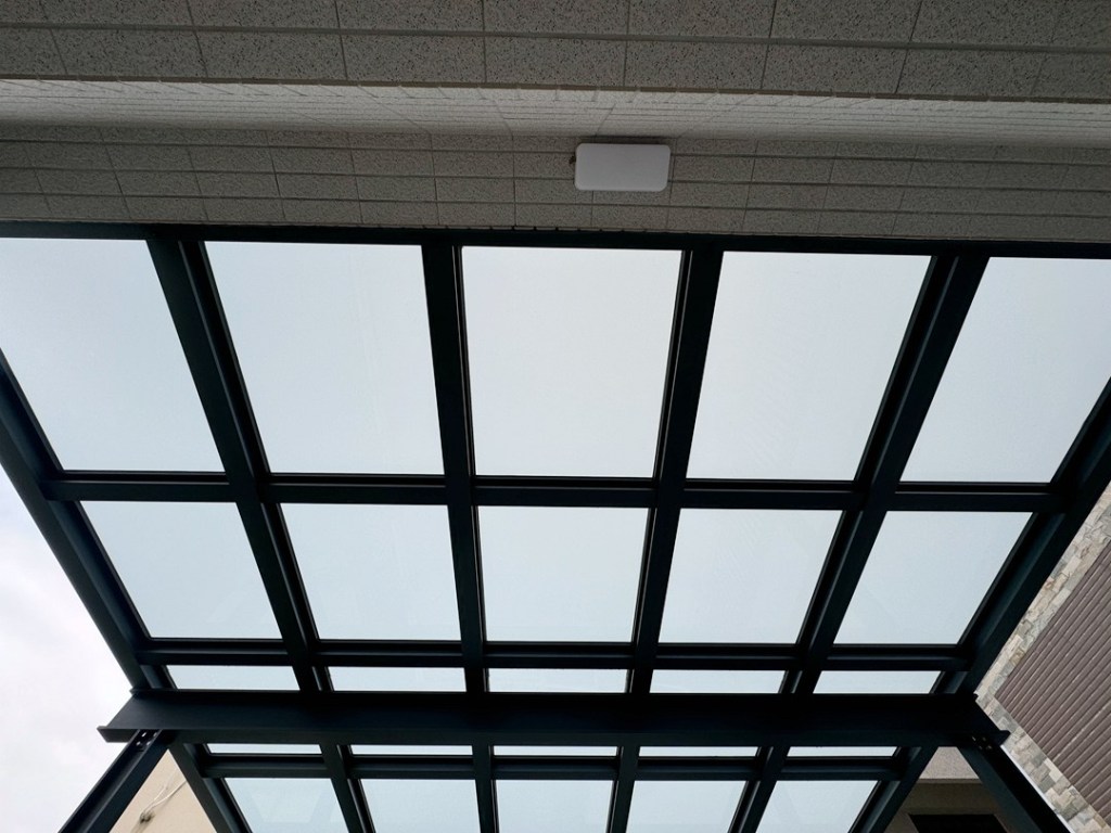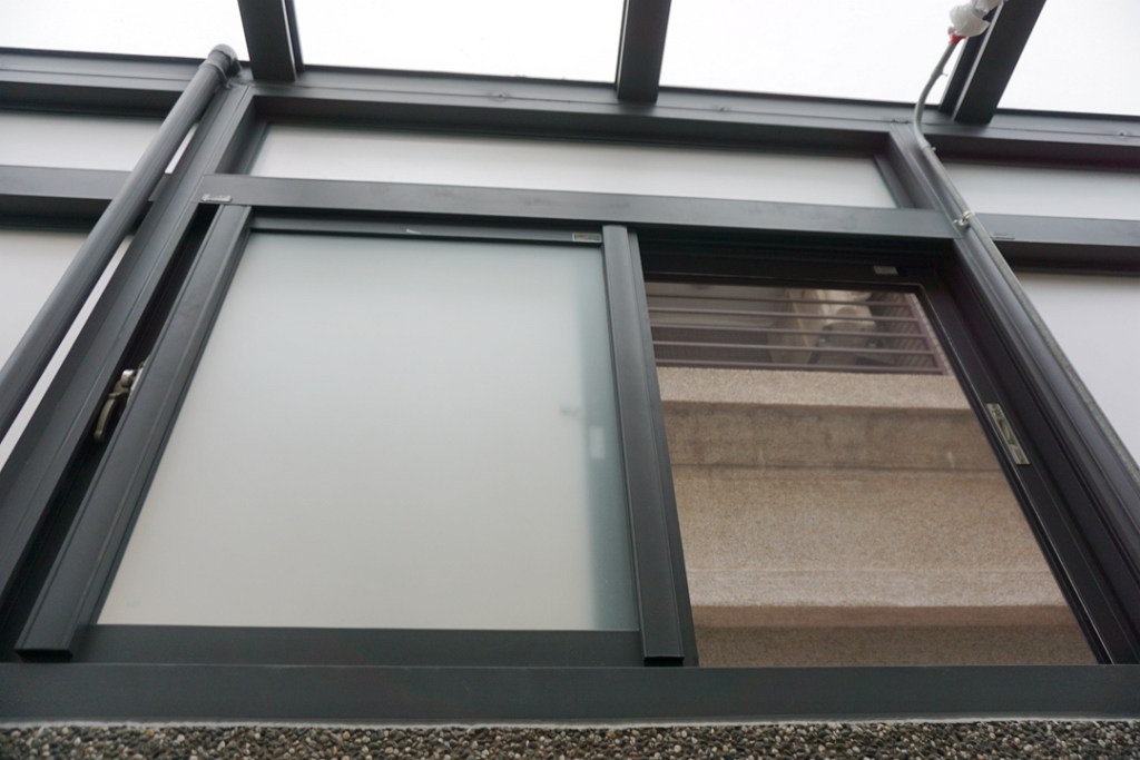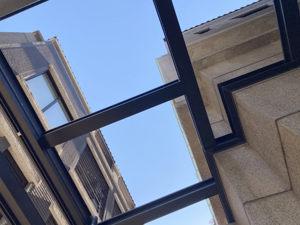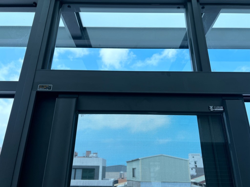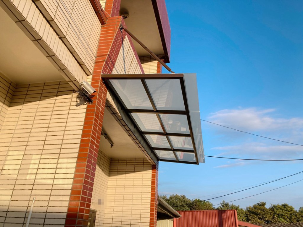 採光罩整體配色選擇和主建築一致的咖啡砂色,俐落大方。上層玻璃則採用膠合安全玻璃,膠合玻璃內層的高韌性中間膜能防衝擊、防爆裂,就算破了也不飛散,真正做到耐震、防盜又安心。