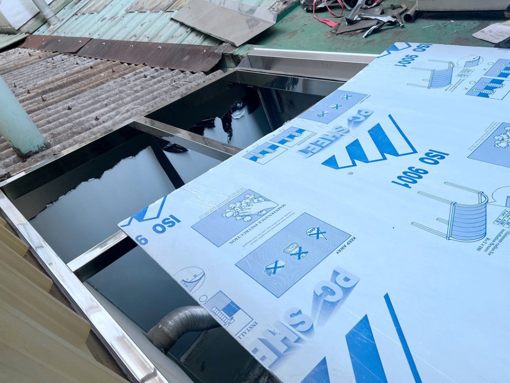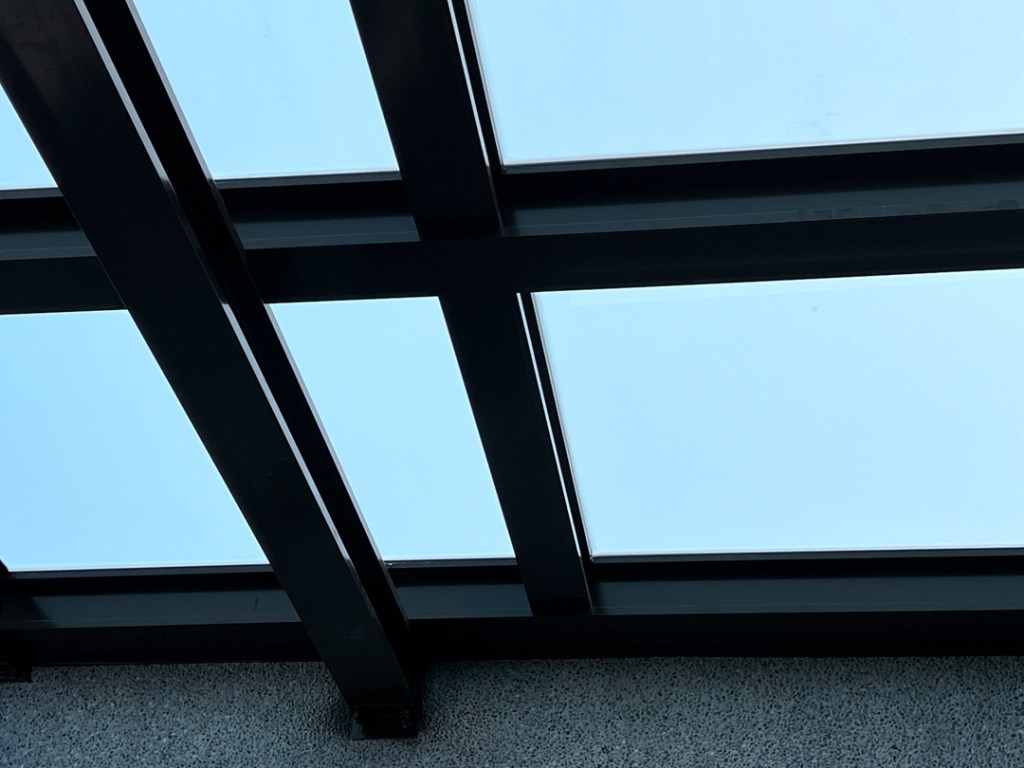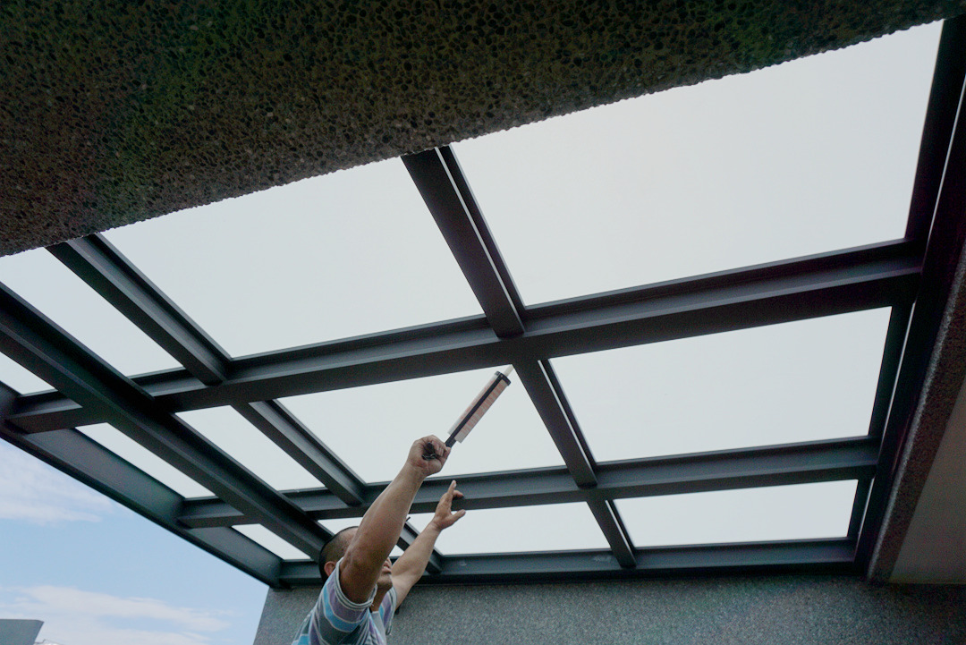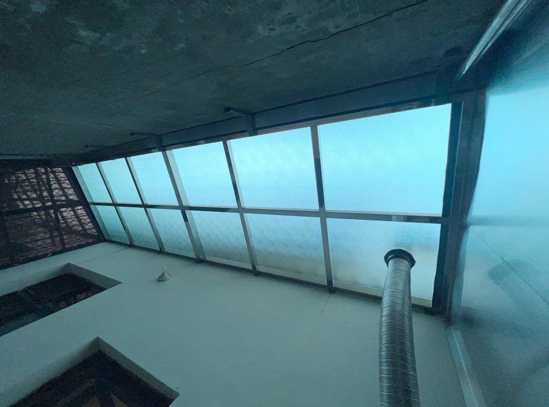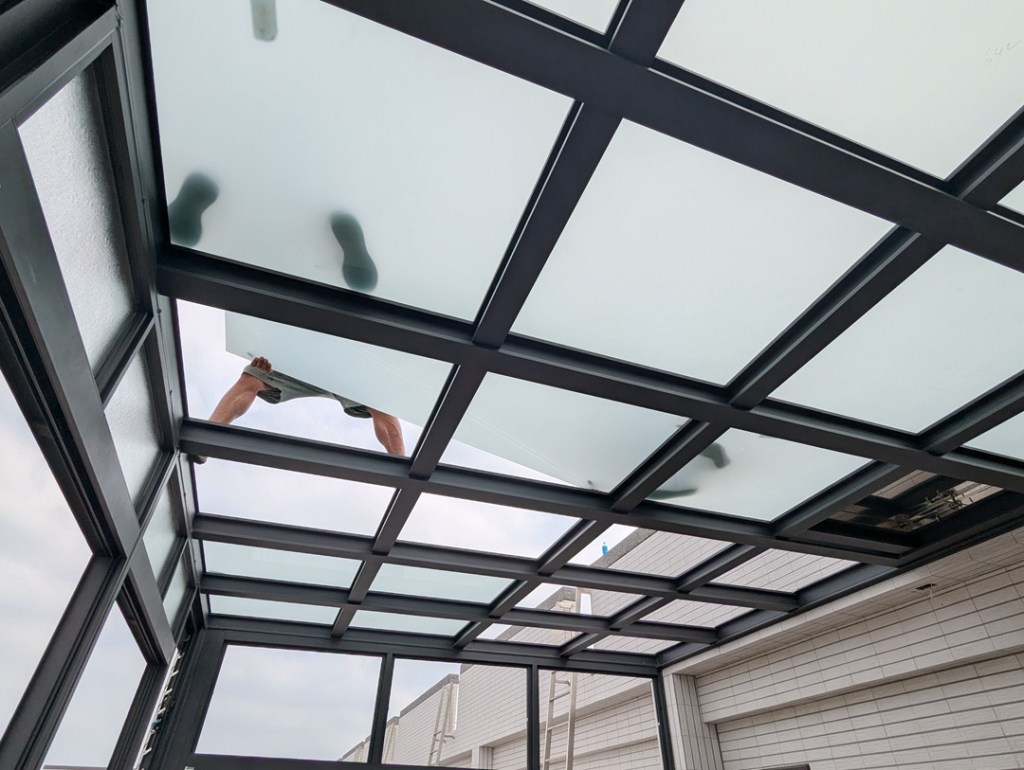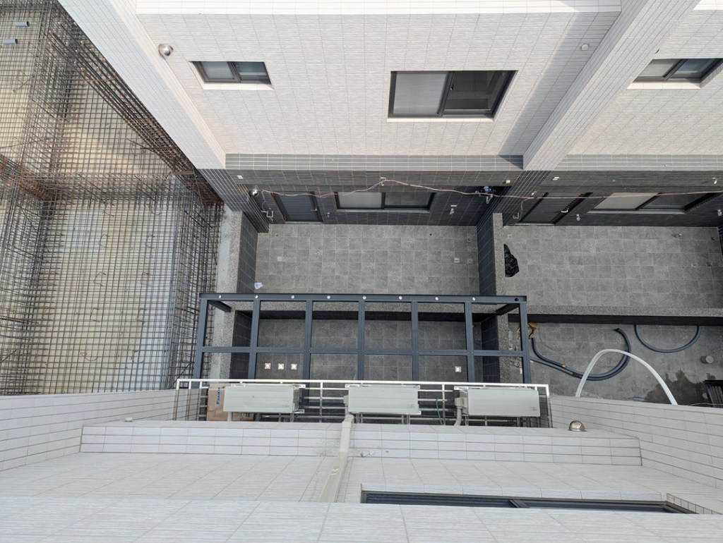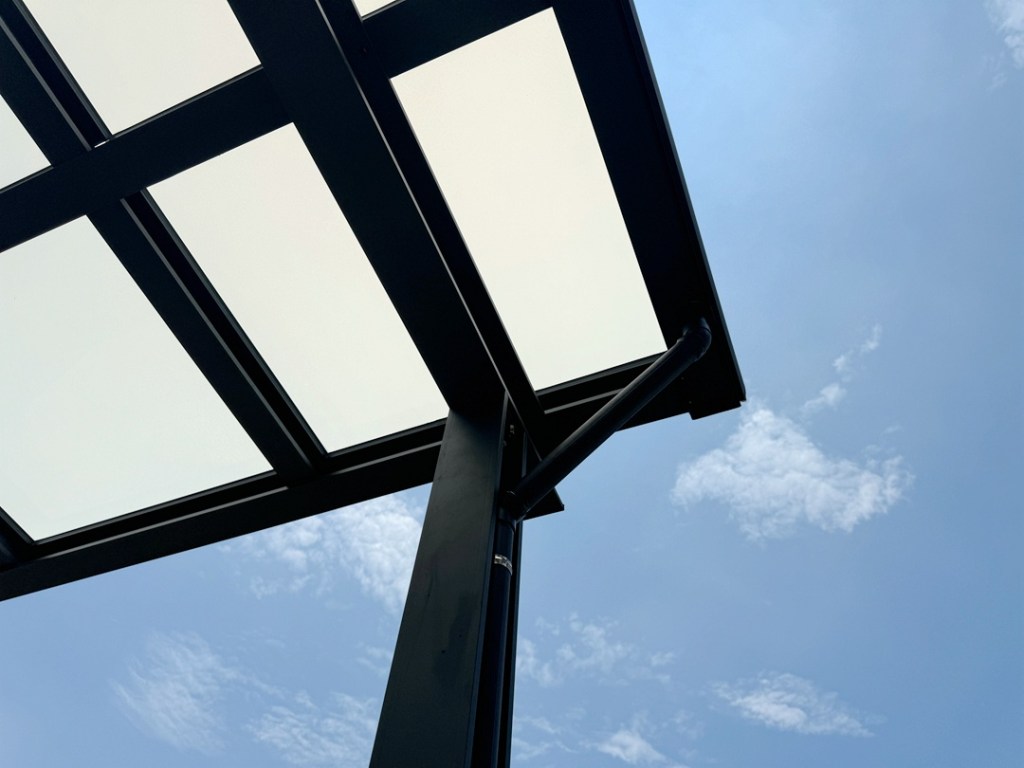 採光罩結構採用鋁合金骨架搭配膠合安全玻璃,相較於傳統PC板材質,不僅更耐候耐用,亦具備更高的安全性與穩定性。玻璃上層設計提供絕佳自然採光,讓整體空間明亮通透。