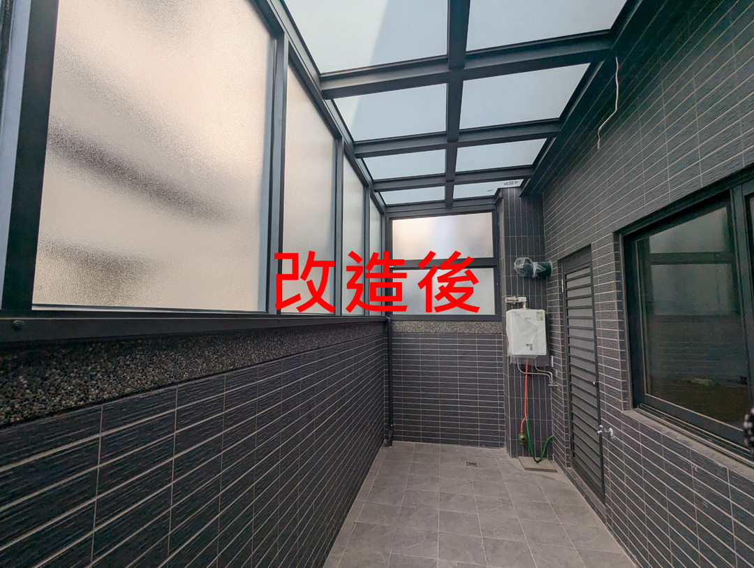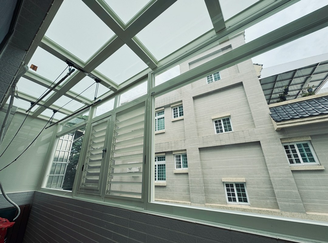 解決方案:因業主後陽台面積較大,建議採用加強支撐的鋁合金採光罩,堅固耐用且通風性佳。